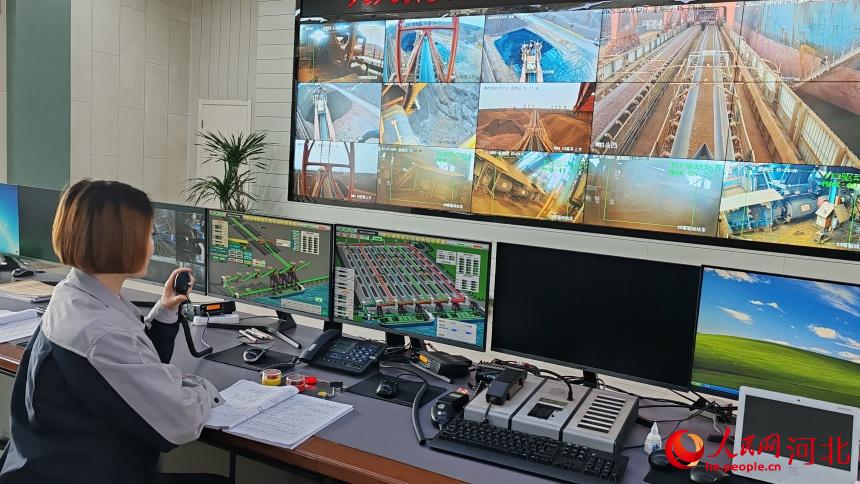 在矿石码头远程控制中心,卸船机司机隋兆旭正专注地盯着眼前的屏幕。他指尖轻划,百米外那台66.8米高的“钢铁巨人”卸船机立刻伸出巨臂,将48吨铁矿石稳稳抓离货舱。“以前在户外40米高的驾驶室操作,冬冷夏热,作业强度还大。”隋兆旭指着屏幕上的三维船舱模型笑道,“现在系统自动发出指令、科学判断装卸货时机和实时生成数据,效率提高,我们工作也轻松了很多!”