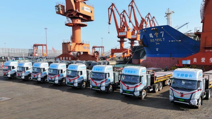 唐山港京唐港区的新能源重卡。唐港股份供图