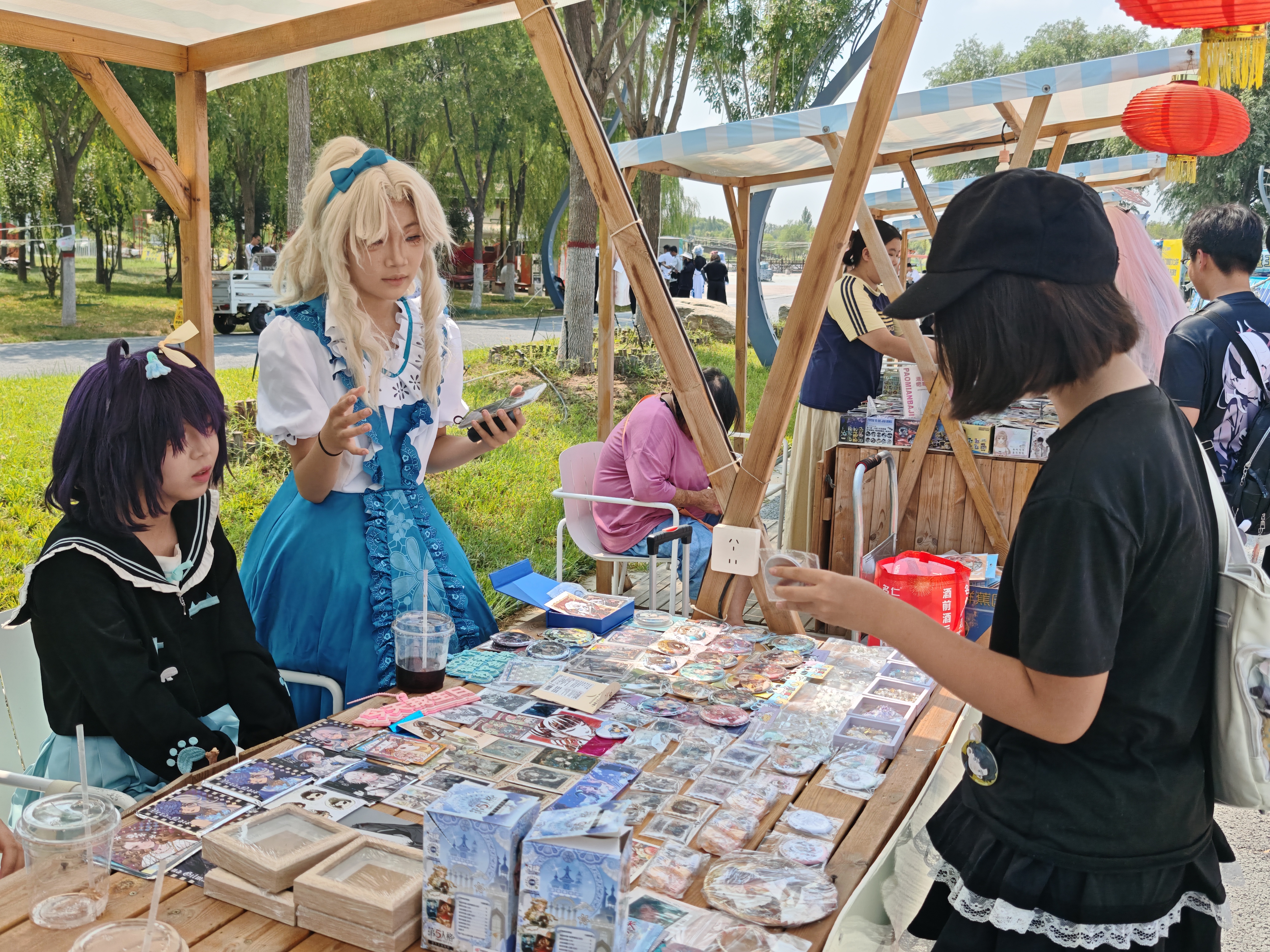 鸭鸭乐园内,动漫市集人潮涌动,原创手办、联名周边琳琅满目,摊主与买家因一句“同好”瞬间熟络,交易成功时的击掌声此起彼伏。打卡点前,coser们摆出千奇百怪的姿势,与衡水湖的荷花、垂柳同框,传统景致与动漫文化碰撞出奇妙火花,引得路人纷纷驻足:“原来动漫展还能这么玩!”