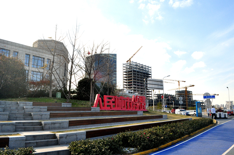 △上海街头“人民城市人民建,人民城市为人民”的立体景观字。