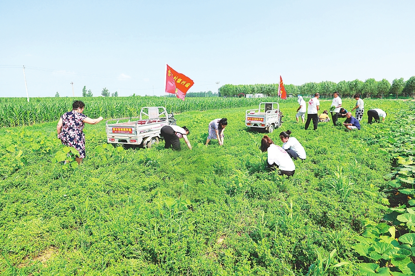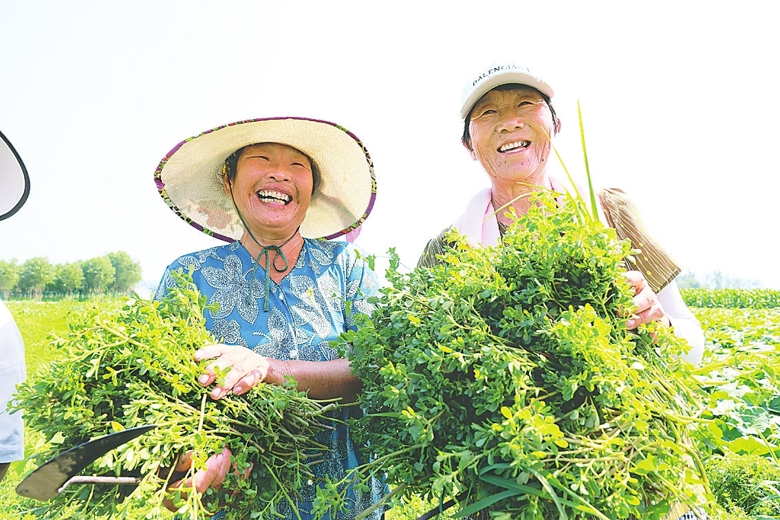 日前,在衡水市故城县东十里铺村的田间地头,一支由20名村内妇女组成的采收团队正有条不紊地忙碌着。她们分工明确,有的弯腰采摘鲜嫩的马齿苋,有的在临时加工点进行分级挑选,有的则将处理好的马齿苋抽真空保鲜分装,一派热火朝天的景象。