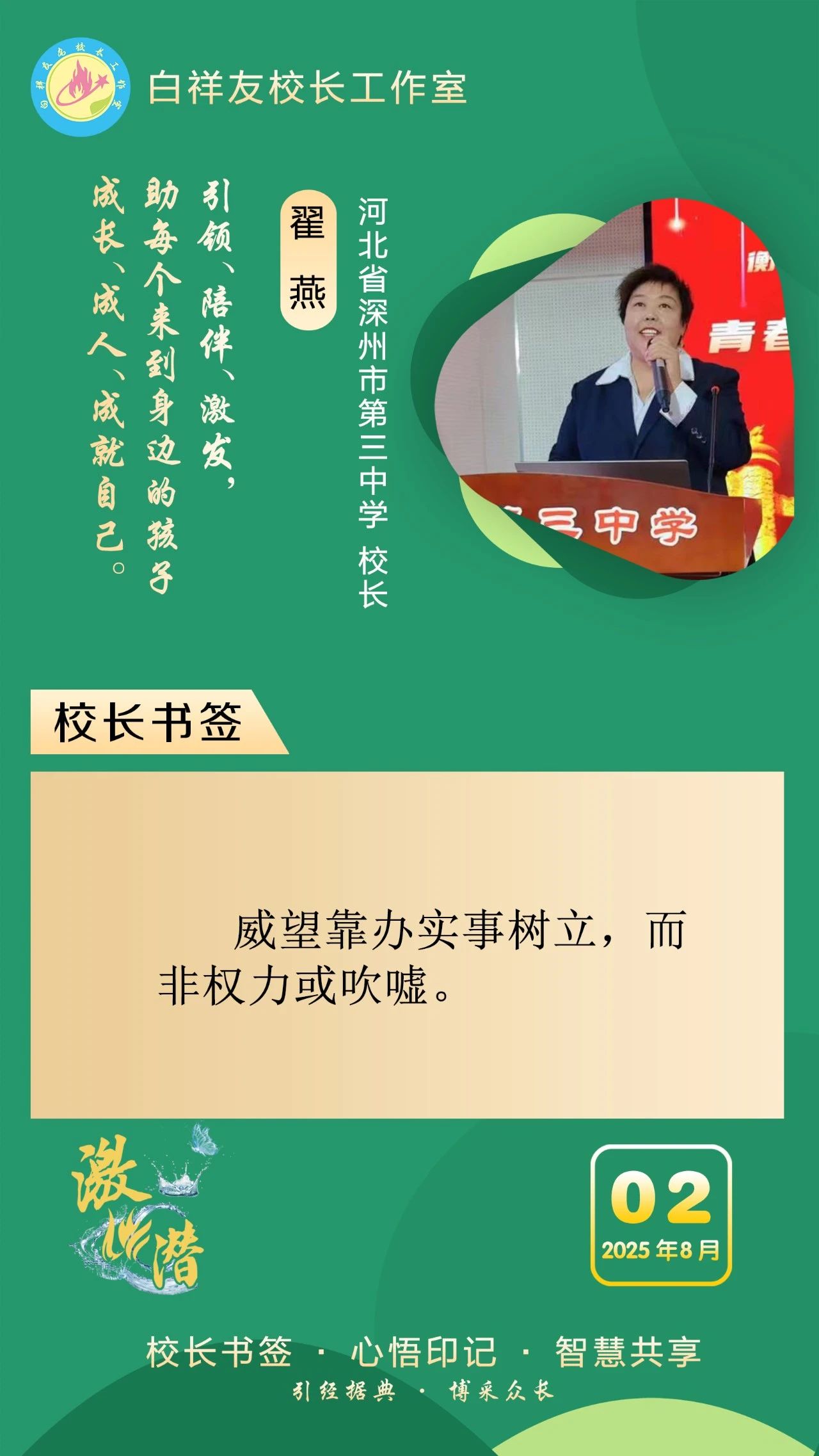 “白祥友校长工作室”成立于2019年4月,是教育部“国培计划”中小学名校长领航工程、河北省首批名校长工作室,目前省内外成员校59所。工作室坚持“资源共享、智慧共融、互助共赢”理念,已成为思想碰撞的交流场,资源共享的品牌站,成果展示的辐射源。 点赞 +1 微博 微信 我要评论 发布 相关推荐 祝贺!衡水十三中学子省赛获奖 教育大观 2天前 白祥友校长工作室成员新疆实验中学冯永庄校长一行来衡水十三中参观交流 教育大观 3天前 春日里,衡水十三中学子“抢”个痛快,“拼”出花样! 教育大观 6天前 衡水市委管理干部学习贯彻党的二十届四中全会精神研讨班开班 政情 03-19 全市一等奖!衡水十三中激潜教育再结硕果 教育大观 03-17 巾帼筑梦绽芳华 向光而行建新功 河北衡水中学举办第十八届“杰出女教师”表彰大会 资讯速递 03-09 衡水十三中学子这样追“锋”! 教育大观 03-06 热门 一天 三天 一周 1 衡水市完成全省首个公共数据产品交易 公共数据收益缴入国库 2 衡水发布27个重点招商产业 聚焦县域特色精准发力 3 春菜上新 衡水市区超市“鲜”意十足 4 阜城码头镇:运河岸边焕新颜 乡村颜值气质双提升 5 仅用两分钟 衡水交警紧急开道护送断指伤者就医 6 “创赢未来”2026创业大赛衡水选拔赛开始报名了 7 孙敬学堂:深耕礼孝传承 筑强研学高地——我市文化建设走笔之三 8 【乡村行 看振兴】科技种出“新花样”——探访桃城区衡水国际设施园艺产业园 9 泰州科举院试文化文物展走进衡博 10 9年4次考察雄安,习近平心中的“千年大计” 1 微改革激发新活力 微创新助力大发展——衡水市扎实推进改革创新工作走深走实 2 衡水市各部门各单位有力有序开展树立和践行正确政绩观学习教育 3 衡水桃城区城东社区开展“世界水日”主题宣传活动 4 衡水市2026年上半年全国计算机等级考试本周末开考,市教育考试院发布考前温馨提示 5 河北各地各部门各单位扎实开展树立和践行正确政绩观学习教育 6 衡水市完成全省首个公共数据产品交易 公共数据收益缴入国库 7 【乡村行 看振兴】“老咸菜”里的乡愁——走进武邑县冀京农粮食种植专业合作社 8 让百姓在家门口看好病 ——河北省聚力建设紧密型县域医共体 9 【新闻发布】 创新招商促落地 深化服务提质效 衡水市持续打造投资兴业热土 10 深州市庄火头村:人勤春早管桃树 精耕细作盼丰收 1 “白牌”电动自行车还能骑吗? 衡水晚报“帮办”核实:已全面禁行,违规上路会受罚 2 高职单招考试3月21日开考 衡水9300余名考生将参加考试 3 【新闻发布】聚焦科技赋能 衡水绘就营商环境新图景 4 【新闻发布】锚定便民利企目标 衡水发布2026年自然资源营商环境新蓝图 5 探秘气象“大本营” 解锁防灾新密码 饶阳县气象局举办世界气象日科普开放活动 6 315金融观察|大地财险罚单密集落地,暴露合规短板 7 以鱼养水净河道 2万余尾草鱼苗放流滏阳河衡水市区段 8 枣强县第四届杏花文化宣传推介会邀您共赴春日之约 9 2026年1-2月份主要经济数据公布 全省经济起步有力 10 沃土育新苗 科创结硕果——探访河北威昌佳泰实业有限公司 广告 广告 广告 24小时 1 保持战略定力和历史耐心 建设创新高地和发展样板 2 习近平总书记引领雄安新区高质量建设和发展的故事 3 白祥友名校长工作室 | 激潜教育探索随笔(第787期) 4 “创赢未来”2026创业大赛衡水选拔赛开始报名了 5 泰州科举院试文化文物展走进衡博 6 衡水市完成全省首个公共数据产品交易 公共数据收益缴入国库 7 孙敬学堂:深耕礼孝传承 筑强研学高地——我市文化建设走笔之三 8 仅用两分钟 衡水交警紧急开道护送断指伤者就医 9 【乡村行 看振兴】科技种出“新花样”——探访桃城区衡水国际设施园艺产业园 10 河北衡水:全民健身 燃动湖城 系列④ —— 乒动湖城 国球飞扬