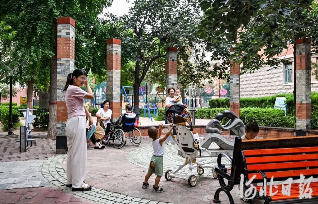 7月31日,石家庄市长安区银都花园小区居民在小区花园游玩。该小区自去年改造完毕后,环境面貌焕然一新,获得群众好评。河北日报记者 耿辉 摄