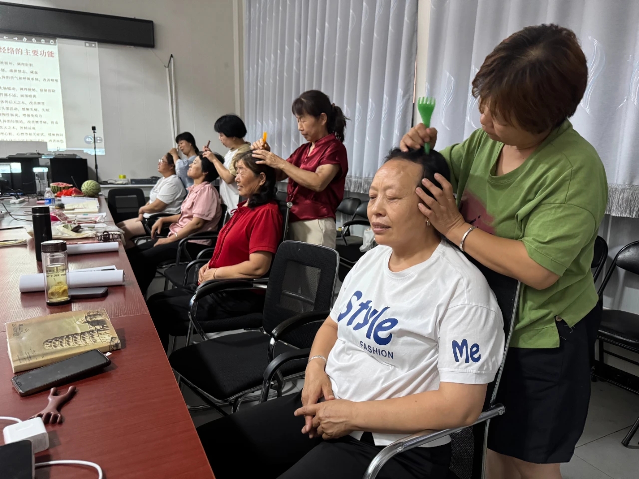 走进田沙洼村的“家政夜校”教室,只见桌椅摆放整齐,桌上放着按摩相关的书籍和工具。课程将理论与实践深度融合。授课老师是有着多年从业经验的专业按摩师,她用通俗易懂的语言讲解按摩的理论知识,从人体穴位分布到不同按摩手法的功效,深入浅出,让学员们迅速理解。实操环节更是气氛热烈,学员们两两一组,在老师的指导下相互练习。学员们一边仔细观察老师的示范动作,一边在同伴身上反复尝试。“以前总觉得按摩是专业人士才能干的事儿,没想到咱也能学,以后家里人哪儿不舒服,我就能帮着按按。” 李大姐笑着说道,眼中满是对新技能的期待。