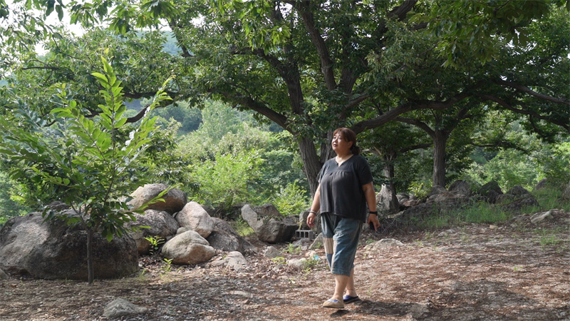 花厂峪村民赵玉明讲述栗子树下的故事。