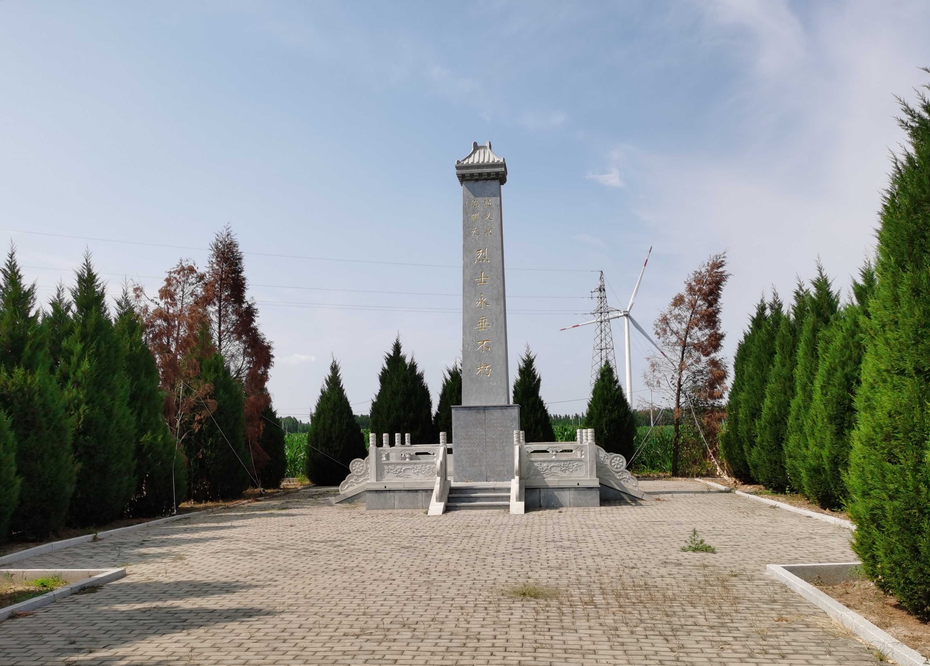 沿着村口的水泥路,穿过成片的玉米地,一眼便看到了位于西江官村北的烈士纪念碑。碑身巍然,正面镌刻着“赵义京、陈耀元烈士永垂不朽”十二个大字;背面记载着赵义京、陈耀元个人履历,以及介绍他们在“八卅突围”中带领战士英勇战斗的事迹。