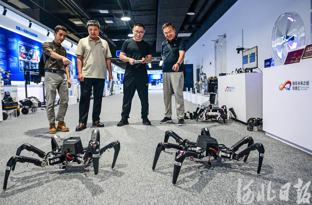 6月14日,雄安未来之城场景汇科创园二楼体验中心内,工作人员正在展示机器人。