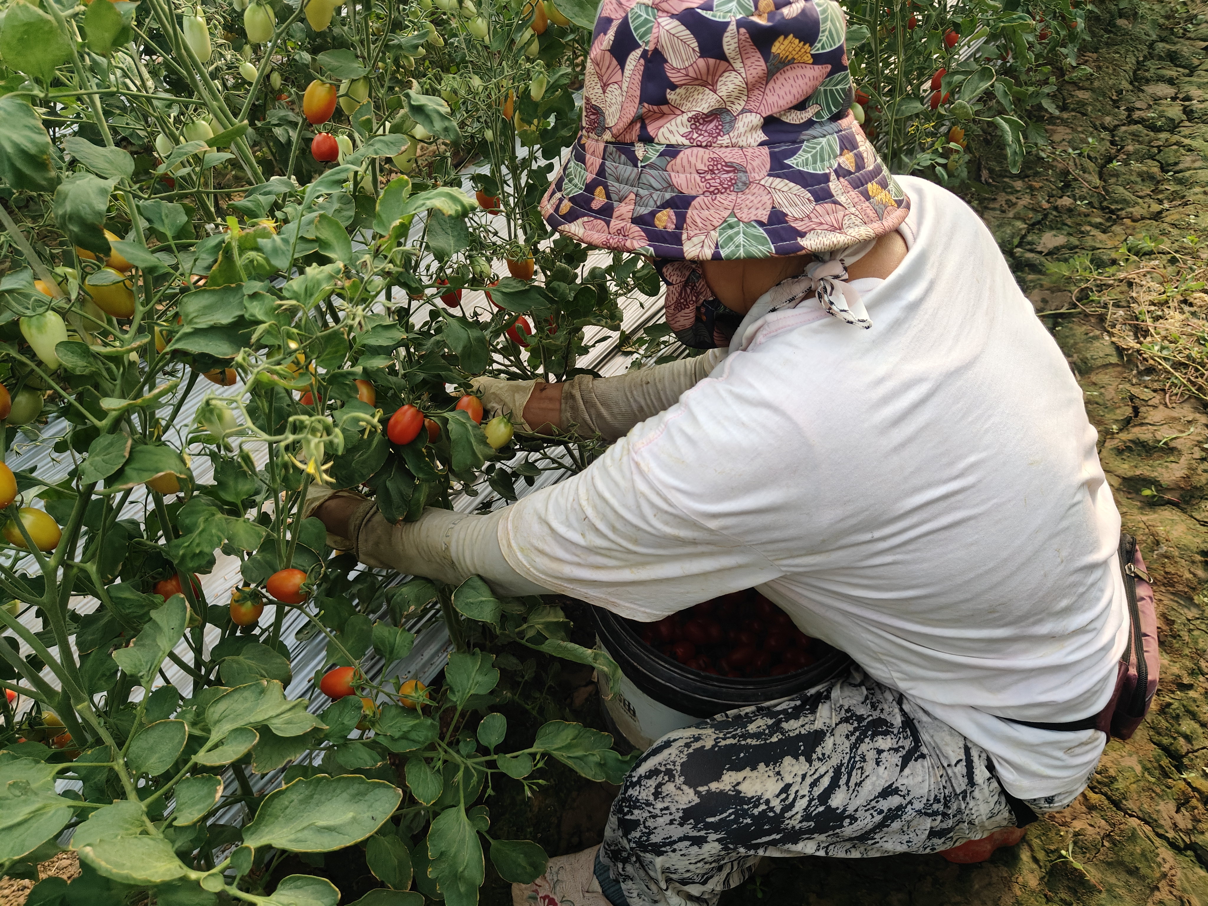 走进前八丈村的樱桃番茄种植大棚,翠绿的藤蔓沿着精心搭建的支架向上攀爬,绿叶掩映之下,一串串圆润饱满的樱桃番茄密密匝匝地挂满枝头,在阳光照射下闪耀着诱人的光泽。果农们脸上洋溢着幸福的笑容,熟练而小心地在藤蔓间穿梭,精准地挑选着成熟的果实。每一个动作都格外仔细,生怕碰伤了这些承载着致富希望的“金果子”。棚内采摘、分拣、装箱的身影忙碌而有序。