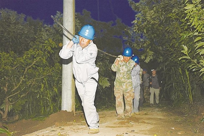 “昨天晚上,供电员工在新立的电杆上架线,下面就是流速极快、‘哗哗’作响的河水,可他们没有丝毫畏惧,一心只为周边村庄早日恢复供电。”一旁的村民感慨道。