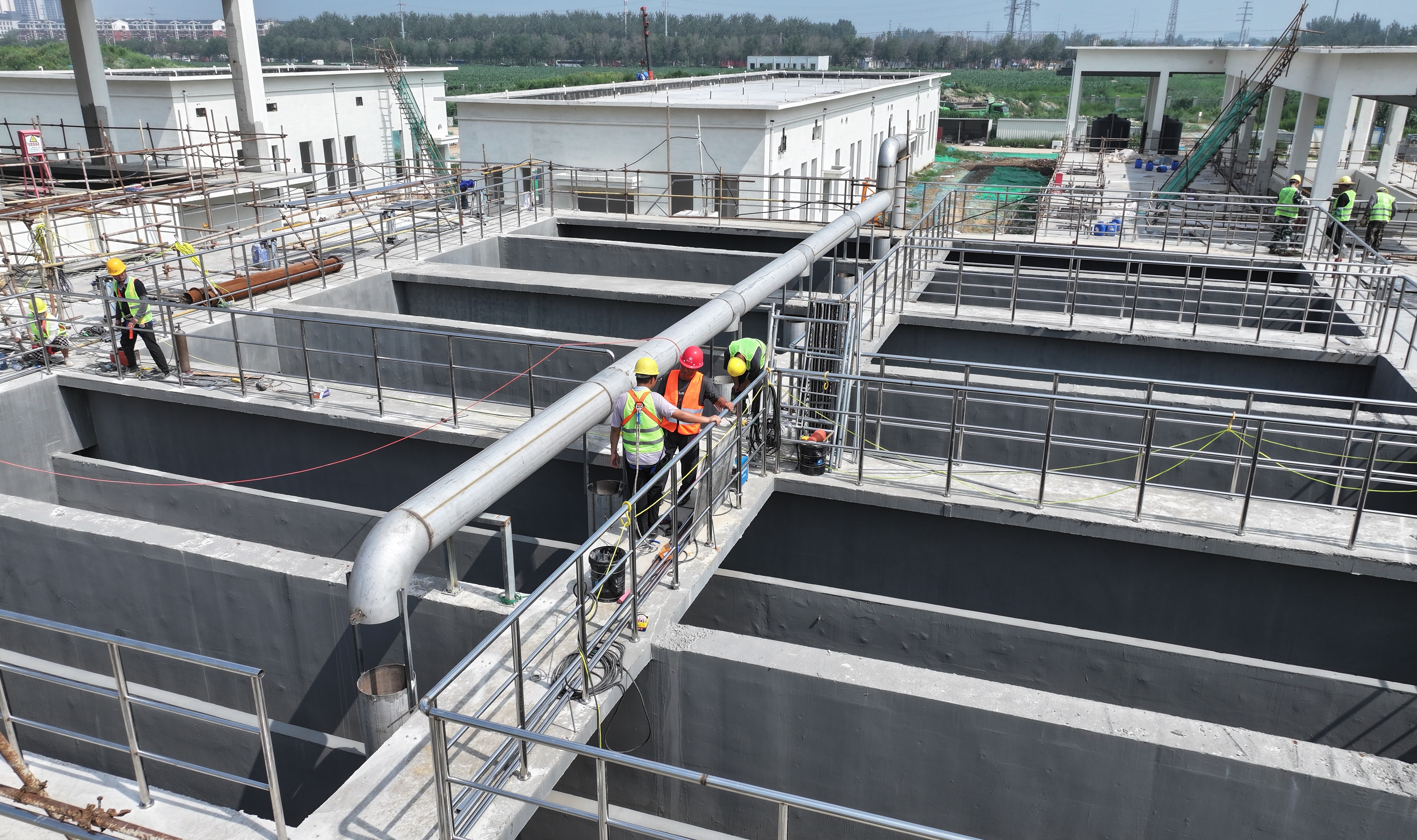 连日来,衡水市第二污水处理厂一期项目现场一派热火朝天的景象,工人们紧张有序、各司其职进行穿管线、设备安装等工作。截至目前,该项目管线安装完成80%,预计11月底将正式投入运营。
