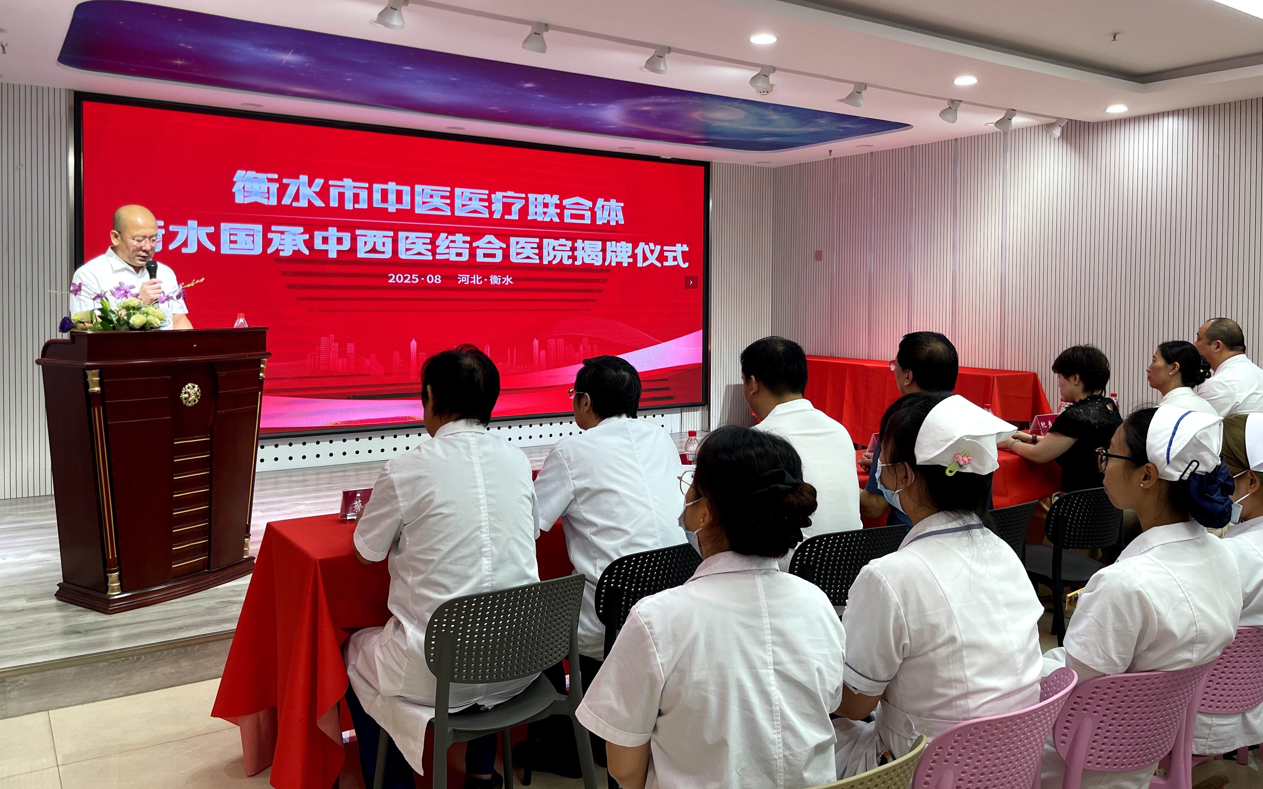 8月8日上午,衡水国承中西医结合医院与衡水市中医医院“医联体”签约授牌仪式在衡水国承中西医结合医院行政会议室举行。