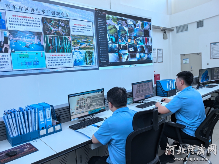 容东片区再生水厂工作人员紧盯电脑屏幕中的设备运行情况。河北经济日报记者 吴新光 摄