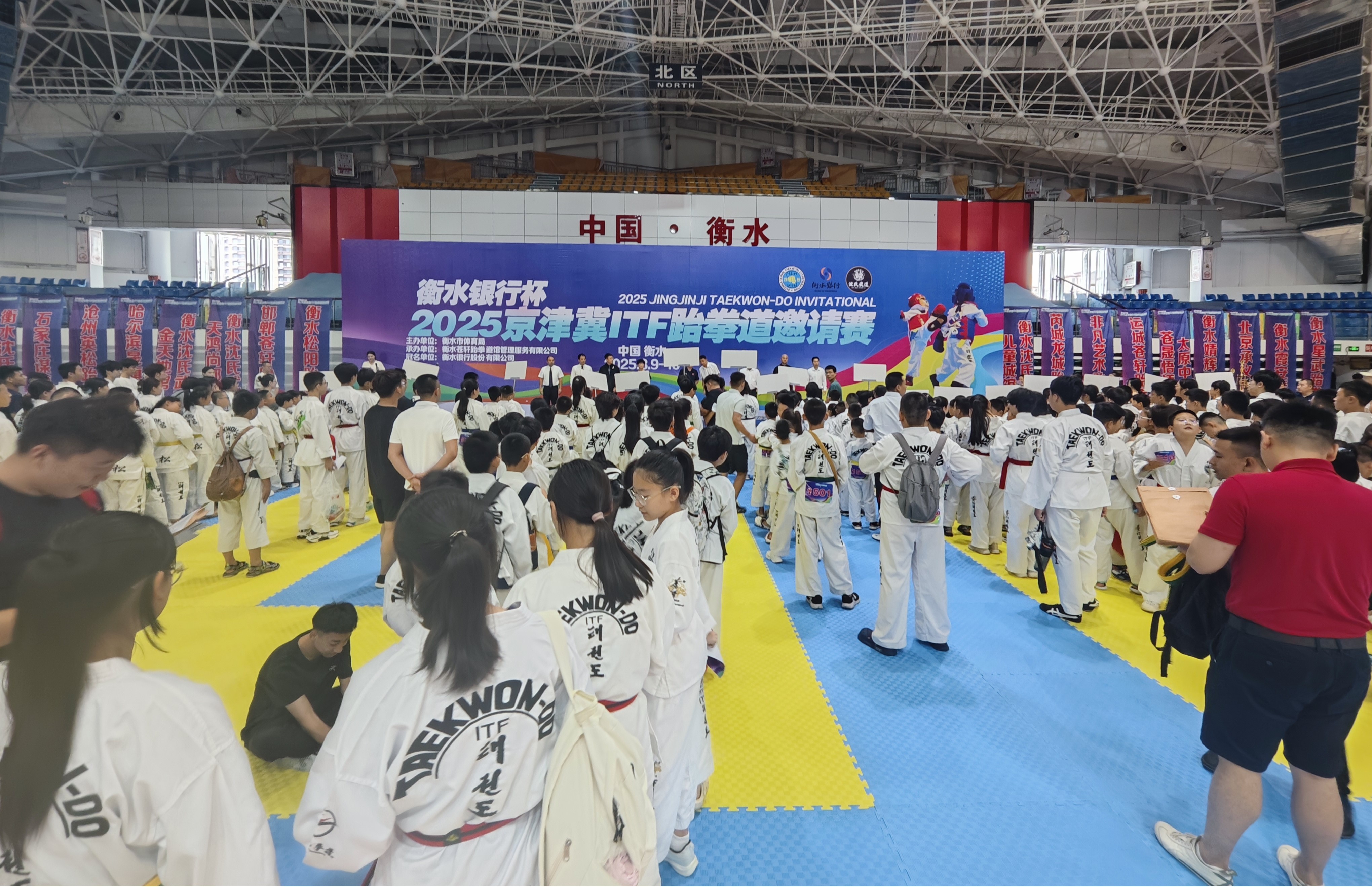 8月9日上午,衡水市体育馆内气势如虹,2025京津冀ITF跆拳道邀请赛在此擂响战鼓。来自北京、天津、石家庄、沧州、邯郸、衡水等城市的16支精英队伍,近300名跆拳道健儿齐聚一堂,以“礼义廉耻、忍耐克己、百折不屈”的跆拳道精神,在赛场展开激烈较量。