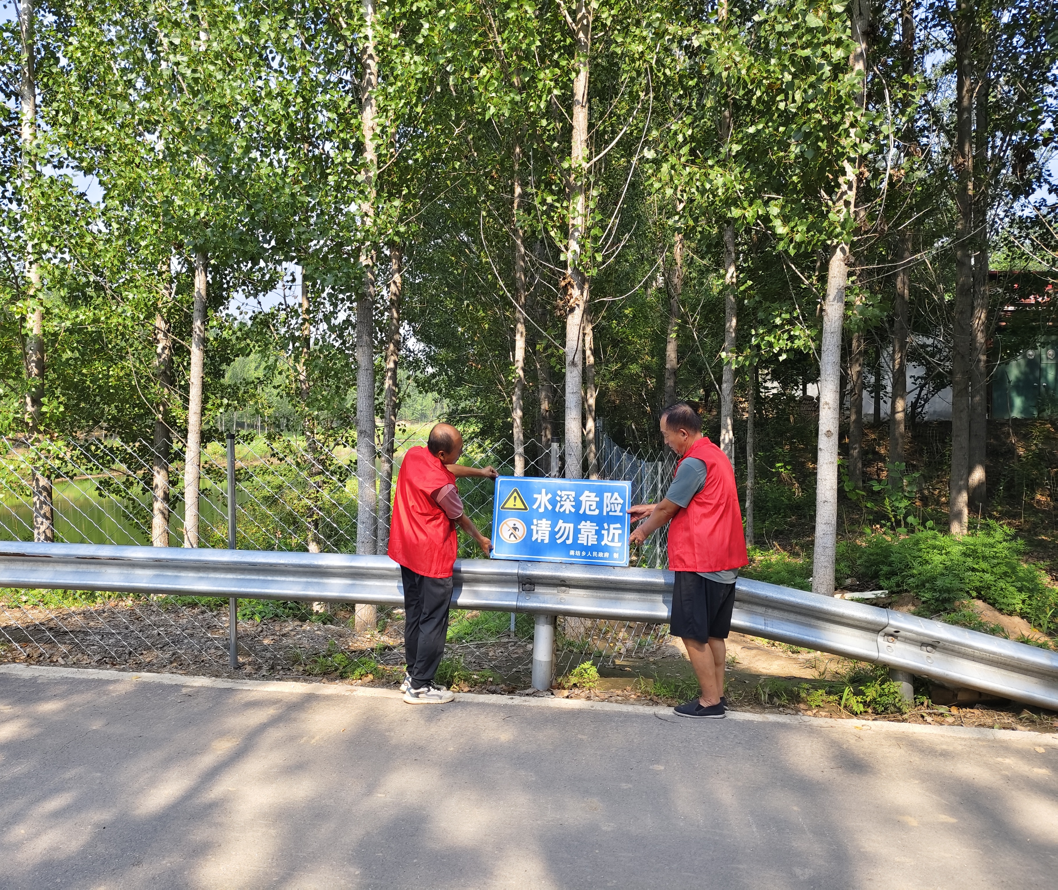 筑牢物理屏障,织密“物防网”。“这防护网拦得真扎实,孩子们在附近玩,我们也能放心些。”看到坑塘周边崭新的防护设施,蒋坊乡群众罗学武赞不绝口。针对雨季坑塘安全风险,该乡迅速部署各村行动,对51个常年有水坑塘全部完成防护栏(网)安装,将水域与群众活动区域有效隔离,并在坑塘显眼位置统一设立警示牌,“水深危险,请勿靠近”“珍爱生命,远离坑塘”等警示语时刻提醒过往群众。为强化重点区域管控,该乡还对20余个钓鱼集中的坑塘加装监控设备,通过科技手段实现实时监测,确保隐患早发现、早处置。