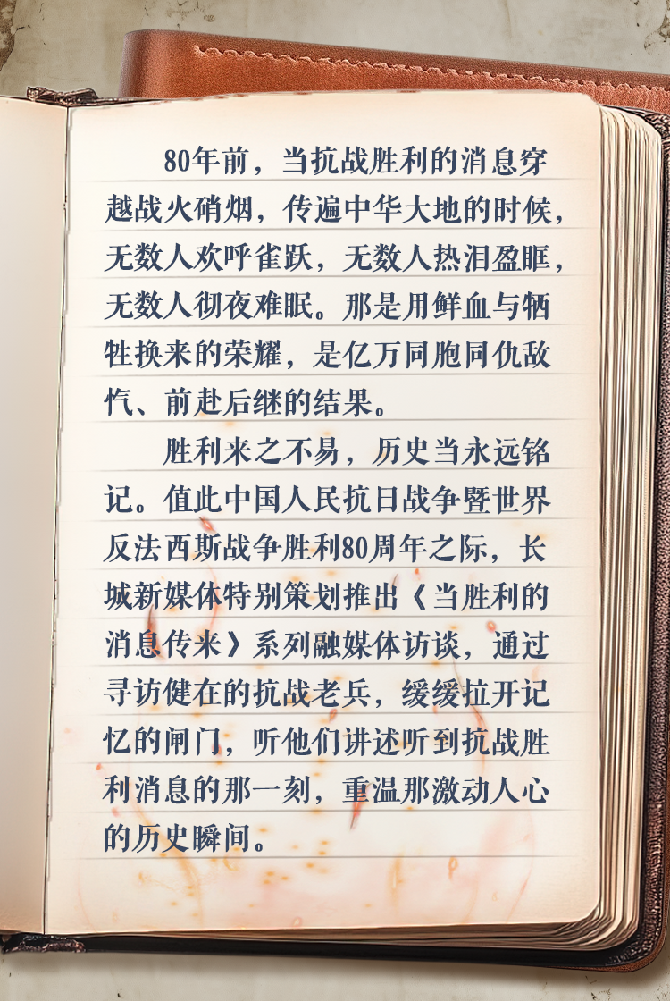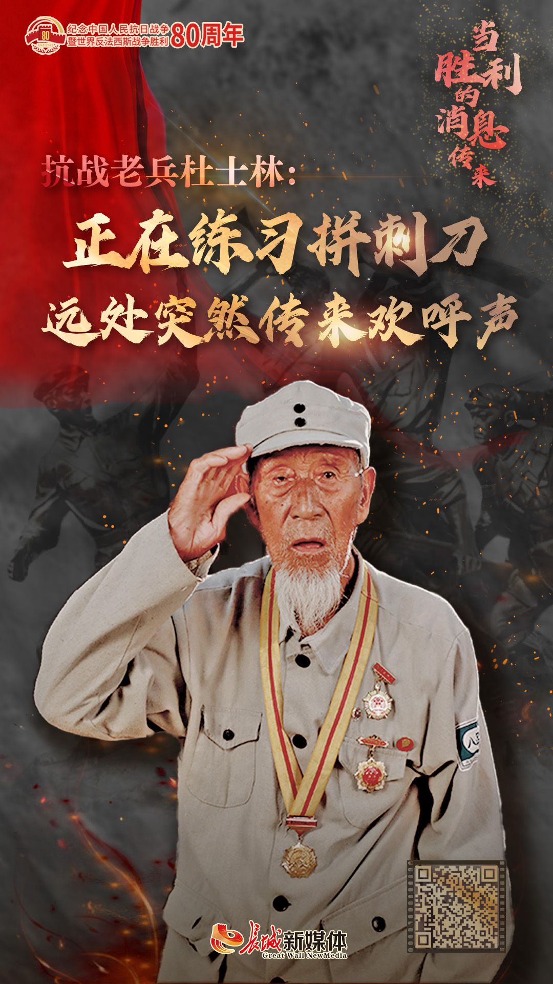 1945年8月的一天,杜士林正跟战友们练习拼刺刀。“日本投降了!抗战胜利了!”远处突然传来欢呼声,一传十、十传百,人们从各家各户涌出来,最终欢呼声如同山呼海啸一般。