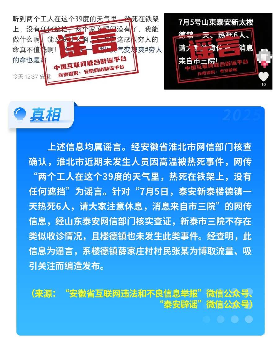 5.安徽淮北、山东泰安等地多人因高温死亡?