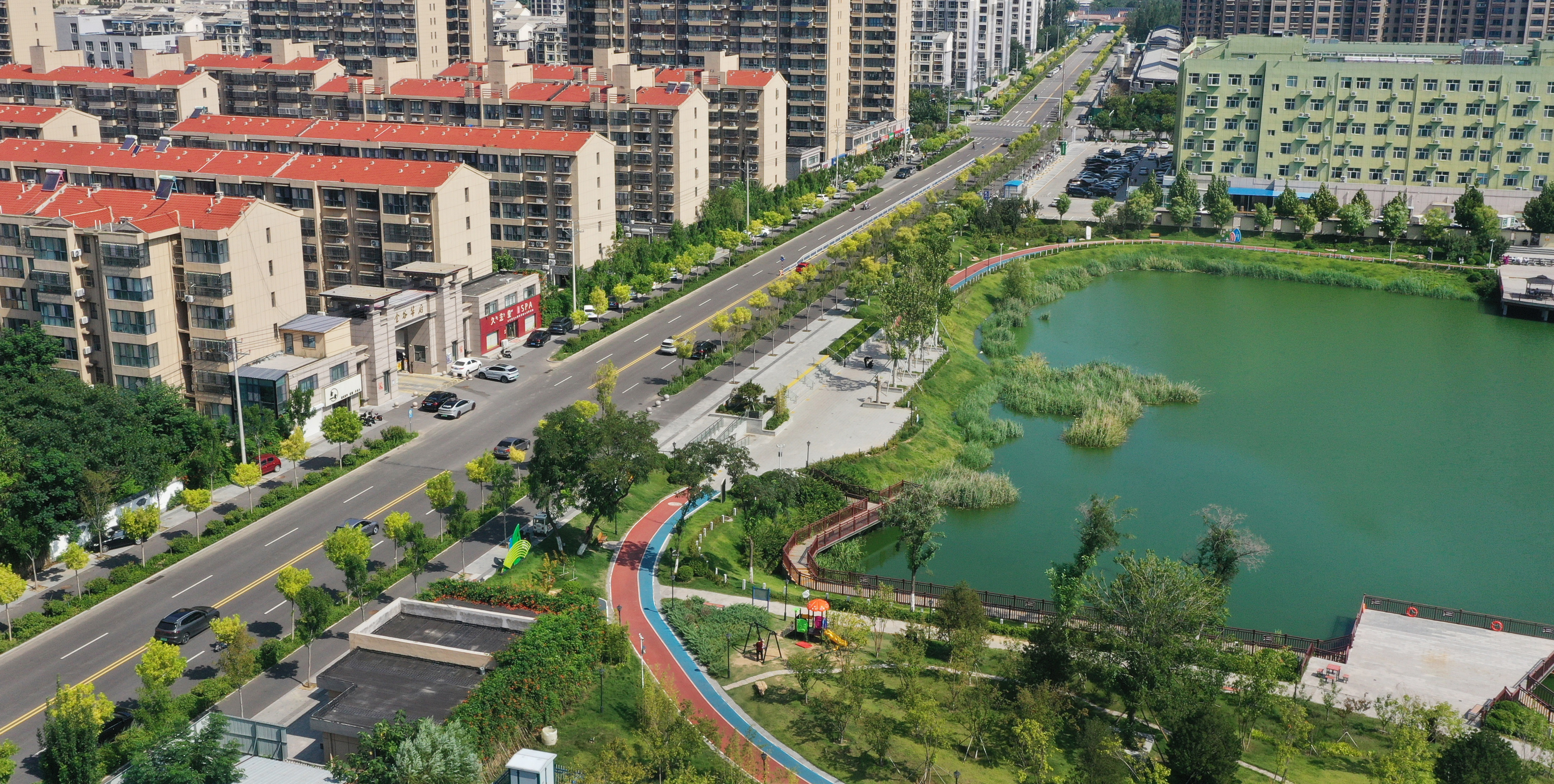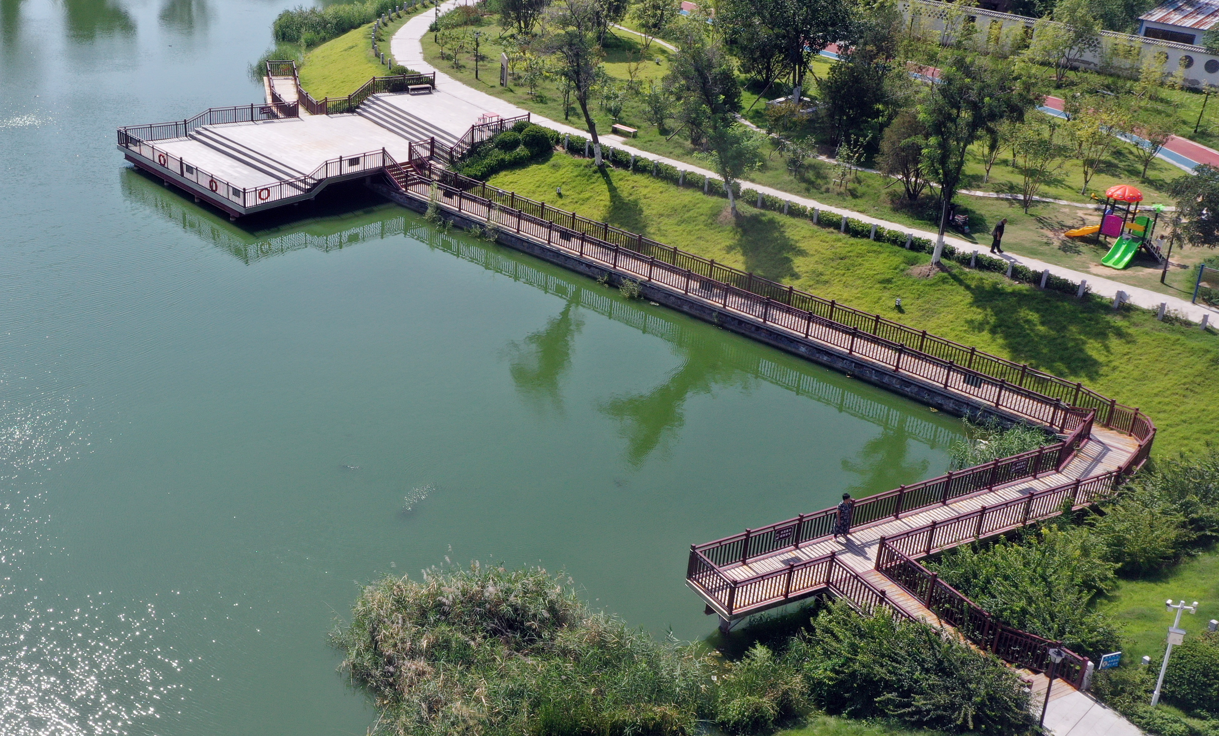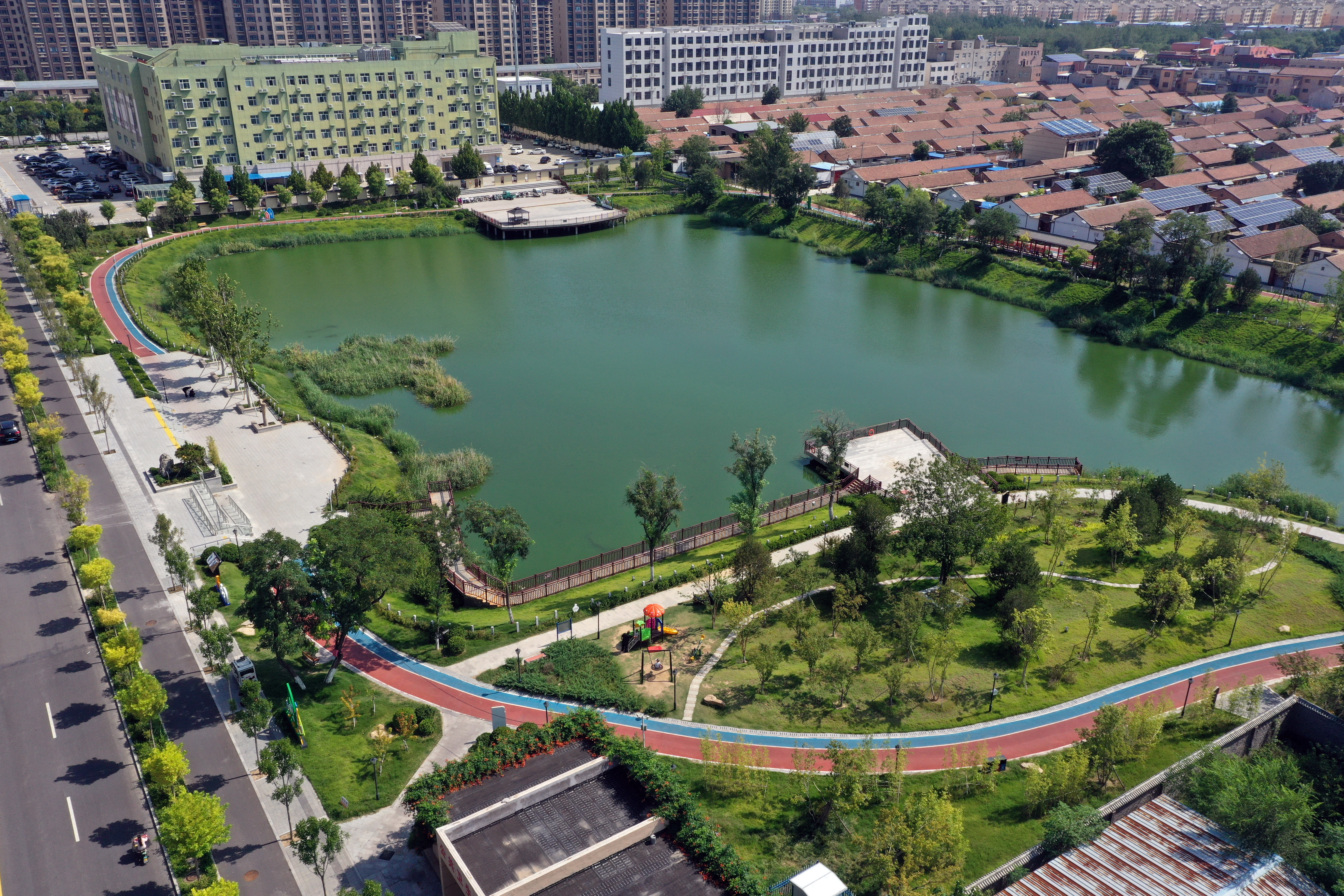 近年来,故城县结合全域水系建设,对废弃坑塘进行综合治理,保留坑塘原有自然风貌的基础上,通过实施水系连通、景观植入等措施,在废弃坑塘原址上建起具有生态景观与调蓄功能的公园,生态环境得到提升,为群众休闲游玩增添了好去处。