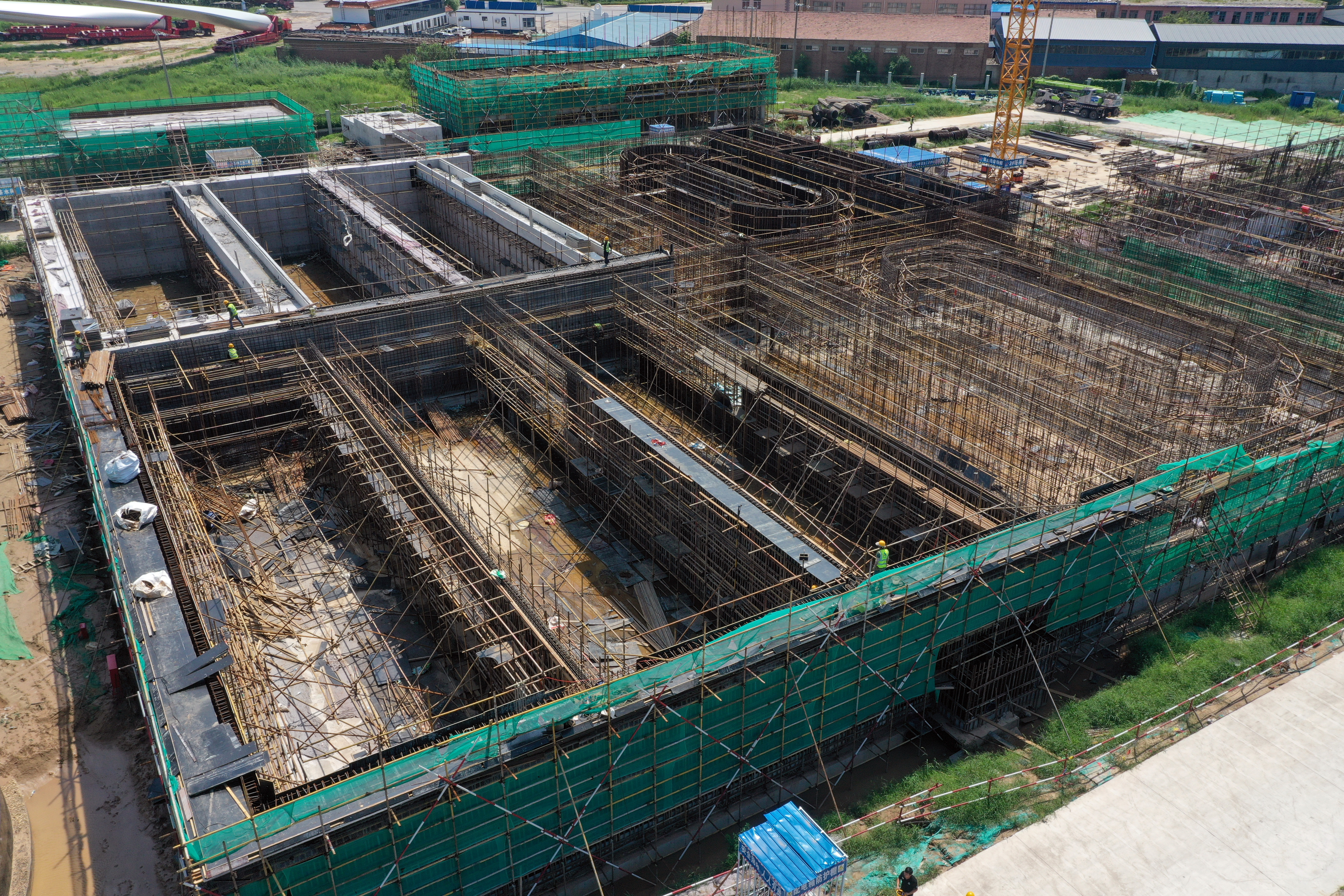 日前,在故城县西北新城新经济产业园基础设施建设项目第二污水处理厂建设工程施工现场,工程车辆往来穿梭,塔吊长臂舒展挥舞,工人们各司其职紧张作业,一派繁忙景象。