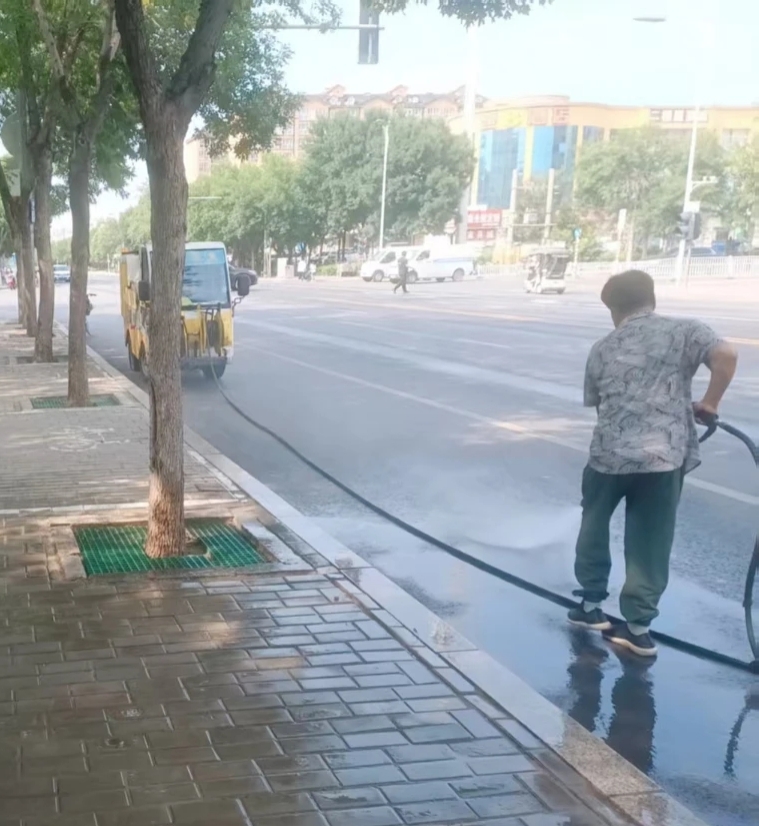 午后时光,烈日当空,扬尘问题更易凸显。市环卫中心在持续进行洒水、雾洗作业的基础上,将工作重心投向城乡接合部、施工工地周边路段、围挡施工周边等扬尘易发生区域,通过增加冲洗次数,强化作业力度,有效抑制路面扬尘扩散。