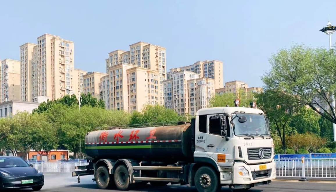 早高峰落下帷幕后,洒水车、洗扫车、雾炮车迅速切换“战斗模式”,按照“道路无积水、保湿不起尘”的核心原则,对市区主干道路进行不间断巡回洒水抑尘作业。作业团队时刻关注天气变化与风向转换,灵活调整洒水、喷雾的作业重点区域,确保每一寸路面都能得到精准呵护,让清新空气始终萦绕在城市的各个角落。