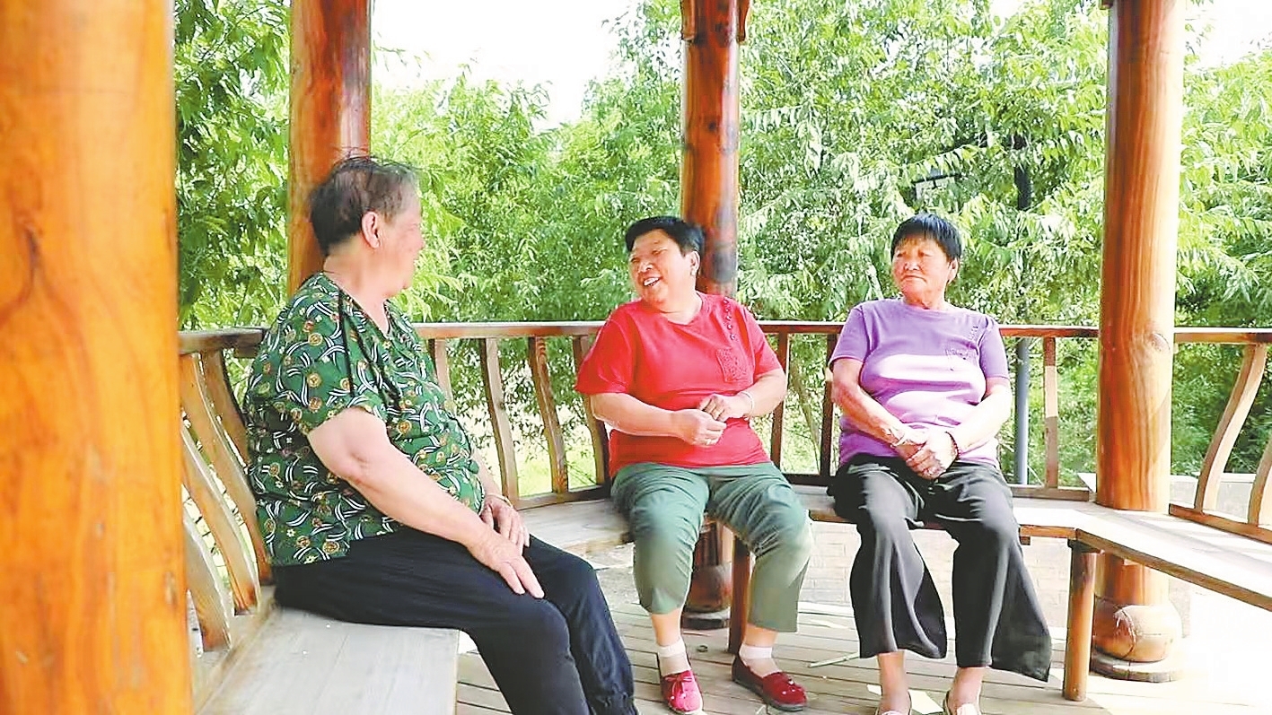 村民在凉亭里聊天。