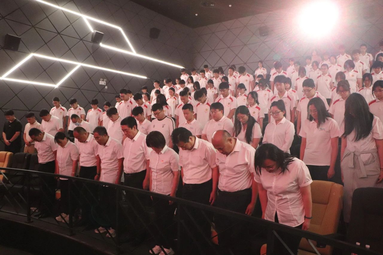 观影结束后,现场随即开展了思政教育活动,全体人员庄严肃立,向英烈默哀一分钟,深切缅怀。默哀毕,学生们主动上台分享观影感受。随后,衡水市教育局督学、衡水十三中校党委书记白祥友和班子成员带领全体师生进行了庄严的集体诵读与宣誓。白祥友书记即兴讲话,强调要铭记历史、坚定信念、勇担使命,将感悟转化为奋进动力。活动在全体人员激昂高唱的国歌声中圆满结束。