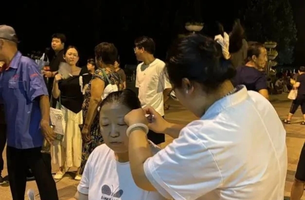 活动一开始,各摊位前就排起了长队。一盏盏柔和的灯下,医生们凝神静气,指尖轻按居民脉门,以“望闻问切”之法,耐心解答健康疑惑,提供个性化的养生指导。在推拿按摩区,专业医师巧手施力,为街坊邻里松解筋骨疲乏,辛劳一天的疲惫仿佛随着揉捏消散于晚风之中。耳穴贴豆义诊体验区,同样吸引了众多居民的好奇。医生精准定位耳部穴位,轻轻贴上药籽,体验过的居民感叹道:“小药籽竟有大功效!”在这里,沁凉消暑的酸梅汤也成了“抢手货”,酸甜交融的滋味在舌尖蔓延,既解了暑气,也让居民们亲身体味了中医食疗的智慧。