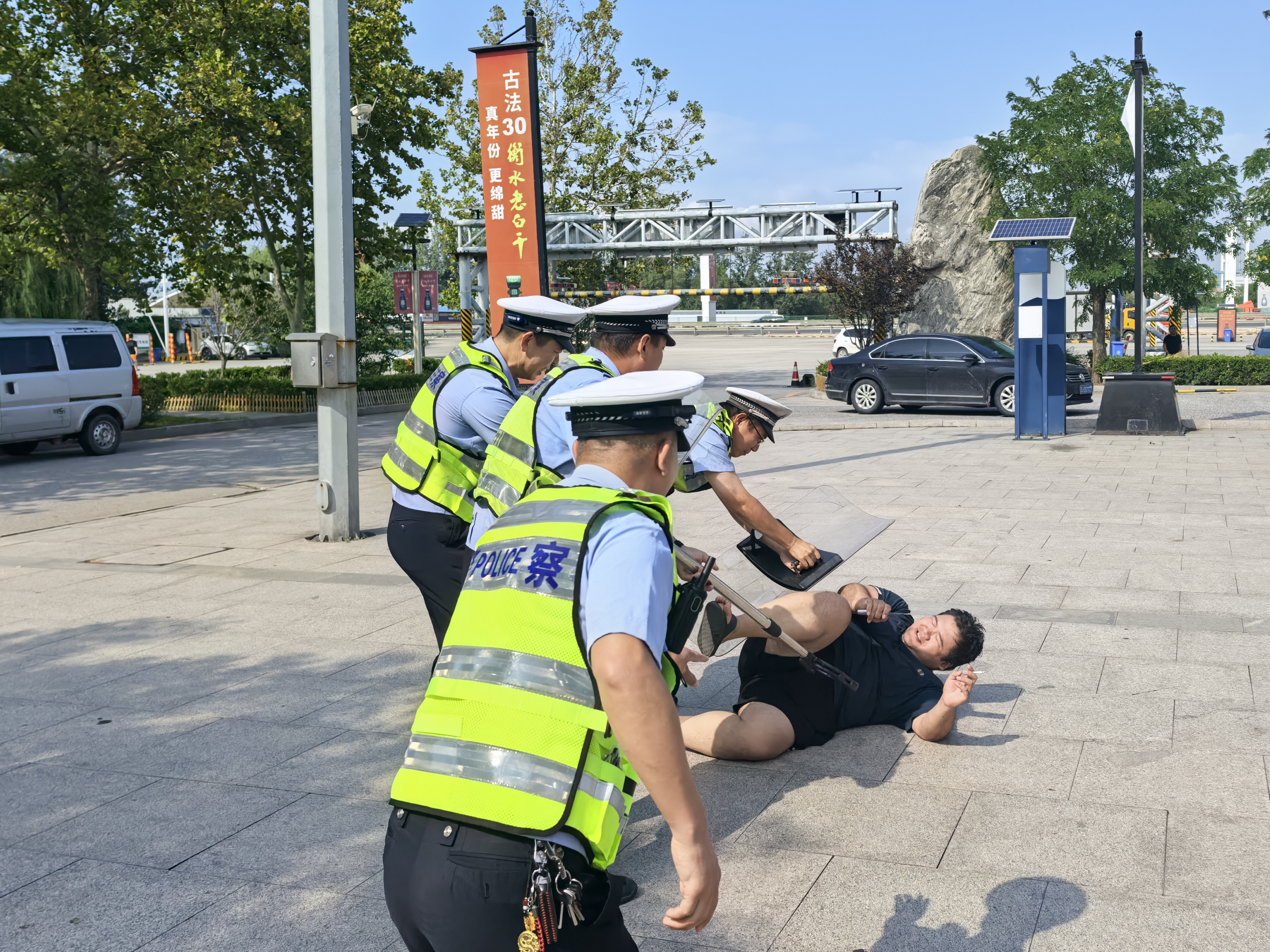 为高效稳妥处置各类暴力警情,最大程度守护人民群众生命财产安全,8月17日下午,高速交警衡水大队在衡水服务区南区组织了防暴应急处突实战演练。