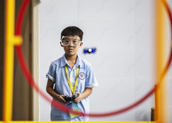 复兴区的孩子在操控无人机参加比赛。聂长青摄