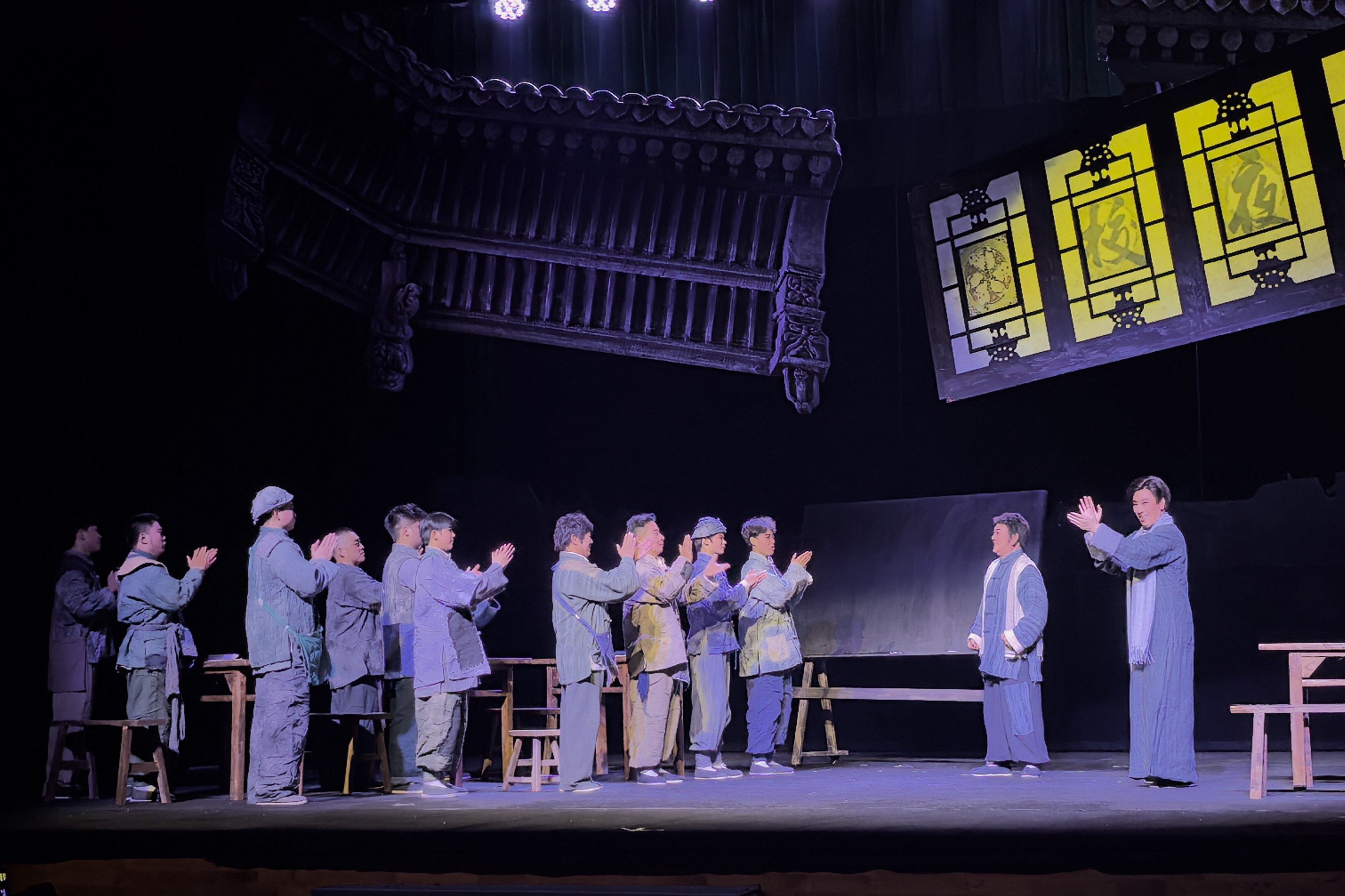 “我志愿加入中国共产党!”随着剧情层层推进,振聋发聩的呐喊声在剧场内久久回荡,现场观众无不热泪盈眶,掌声雷动。本剧以独特的“文化启蒙”视角切入革命叙事,深情演绎了弓仲韬如何将“跪着求生”的民众唤醒,凝聚为“站起来抗争”的磅礴力量。剧中巧妙运用象征手法,将《台城星火》置于近代以来中华民族寻求复兴的宏大历史背景中,以鲁迅先生《自题小像》的诗句“寄意寒星荃不察,我以我血荐轩辕”为情感符号,深情讴歌了革命先辈们赤诚的家国情怀与无畏的牺牲精神。