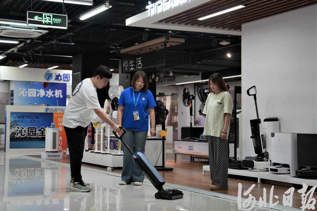 近日,保定市某家电商城,市民在体验家用洗地机性能。河北日报记者许佳奇摄