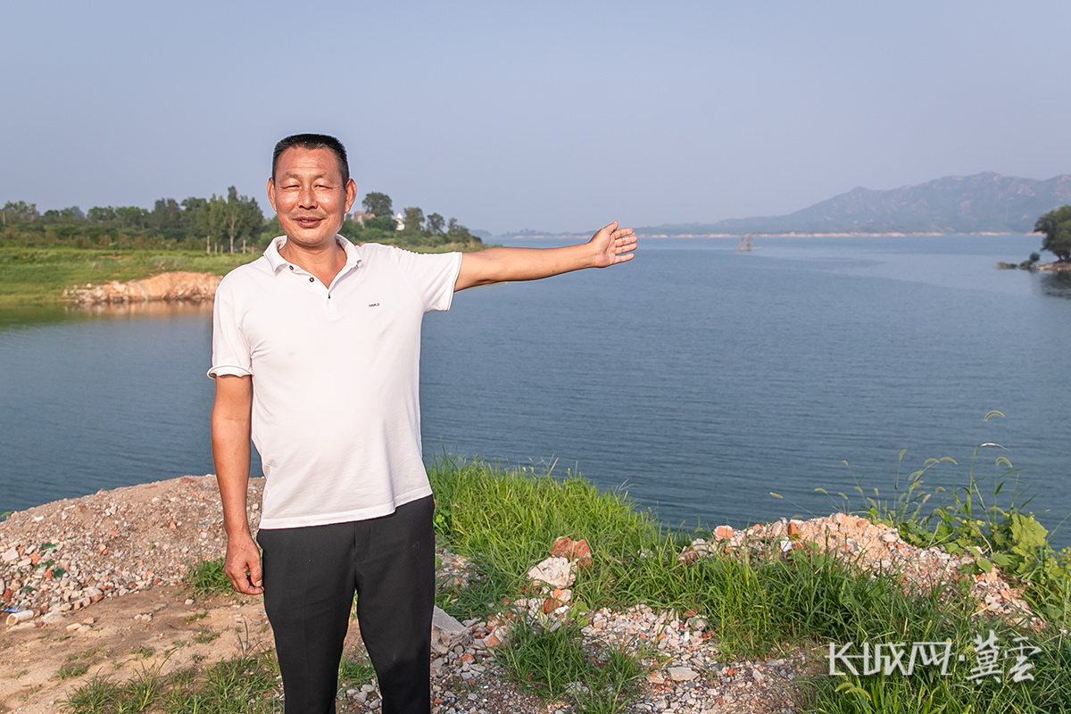 ▲ 2025年8月13日,北庄村党支部书记、村委会主任封红卷在岗南水库边,向记者介绍平山县北庄村搬迁故事。1958年,为支持岗南水库建设,北庄村仅用半年时间就完成了全村920人的搬迁任务。长城网·冀云客户端记者 庞晓玮 李皓 摄