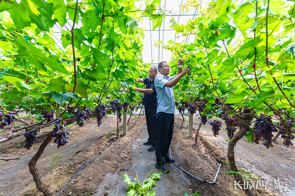 ▲ 2025年8月13日,种植户正在大棚里为葡萄剪枝。近年来,北庄村大力发展休闲农业,为村民增加就业机会。长城网·冀云客户端记者 庞晓玮 李皓 摄
