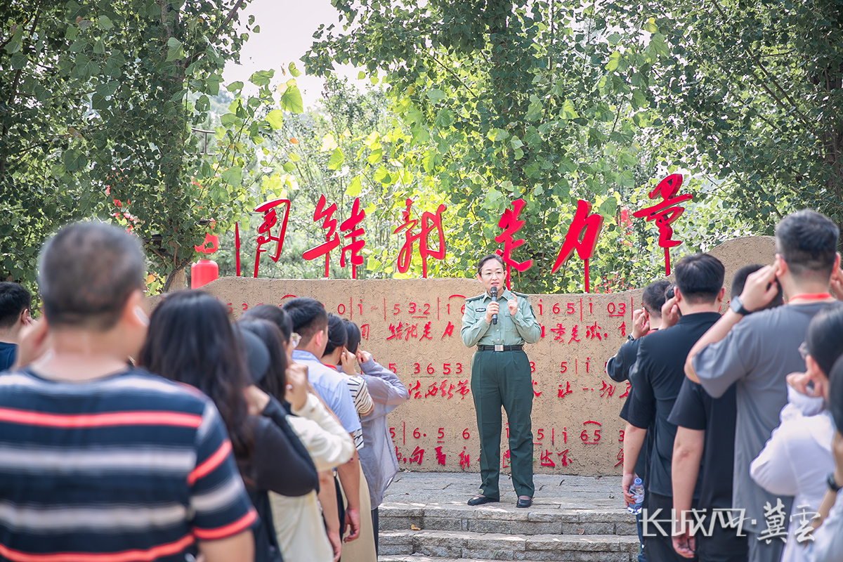 ▲ 2025年8月13日,中央宣传部旧址内,游客络绎不绝。图为广东游客张先生带家人游览中央宣传部旧址,向孩子讲述红色历史。长城网·冀云客户端记者 庞晓玮 李皓 摄