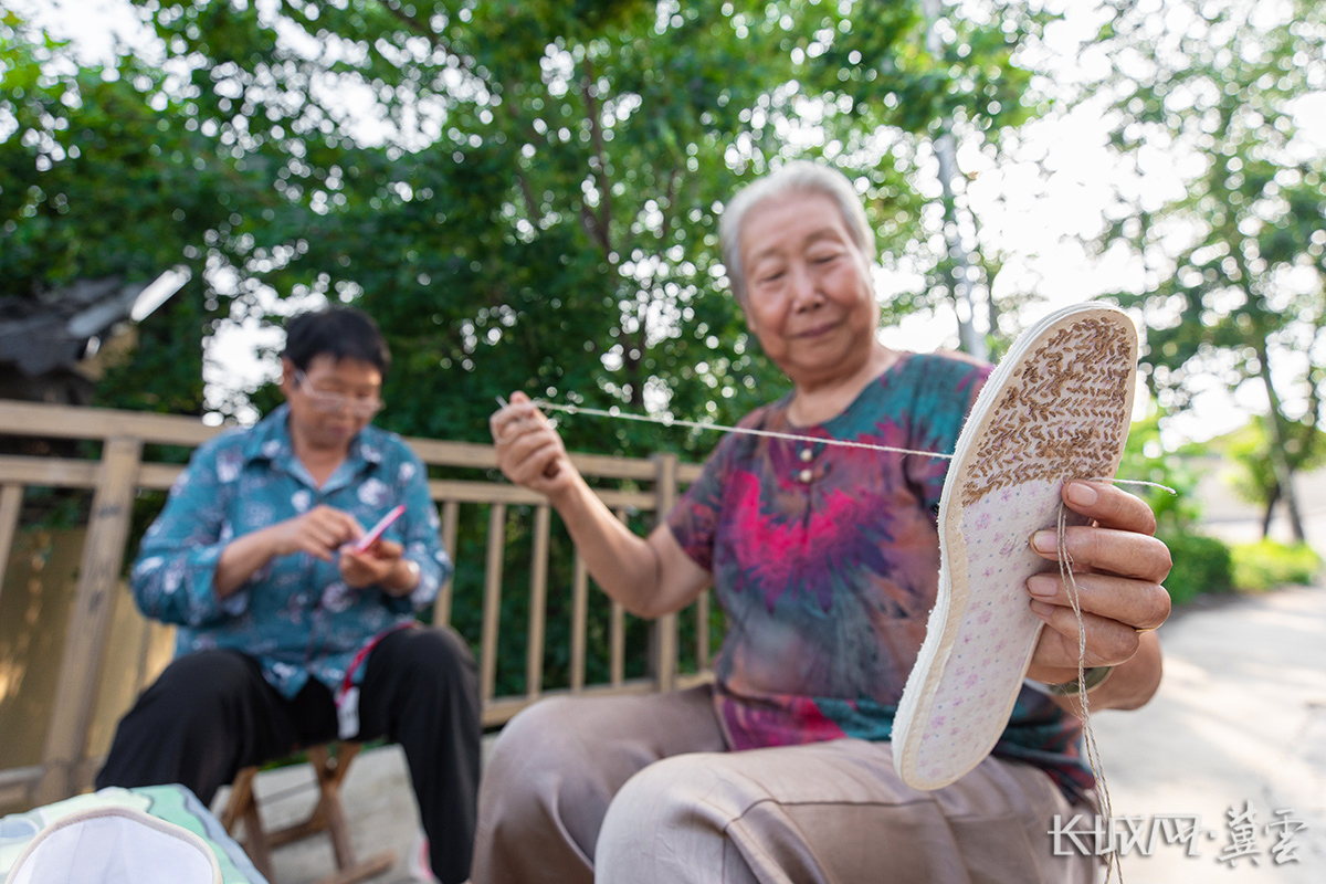 ▲ 2025年8月13日,平山县北庄村村民们一边聊天,一边缝制鞋垫。2021年北庄村村民王亚梅创立“团结手工坊”,带领村里的大娘大婶们通过制作手工艺品增收。长城网·冀云客户端记者 庞晓玮 李皓 摄