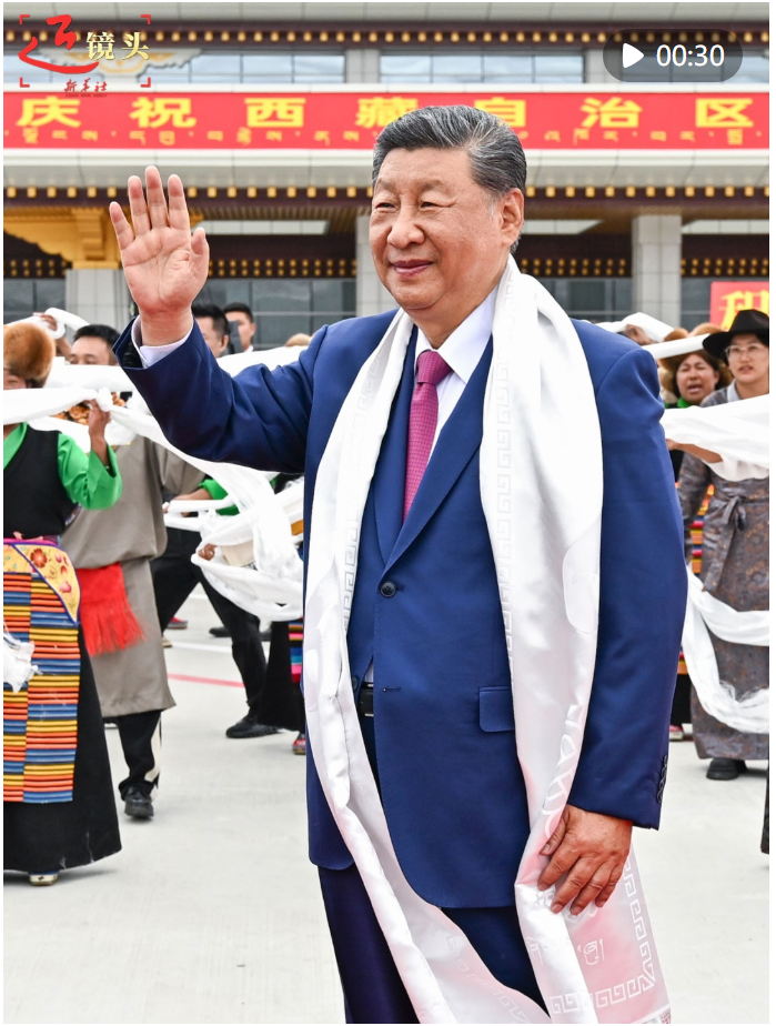 中共中央总书记、国家主席、中央军委主席习近平率中央代表团20日中午乘专机抵达拉萨,出席西藏自治区成立60周年庆祝活动。习近平作为中共中央总书记、国家主席、中央军委主席率中央代表团到西藏出席西藏自治区成立庆祝活动,在党和国家历史上是第一次,充分体现了党中央对西藏工作的高度重视、对西藏各族干部群众的亲切关怀。