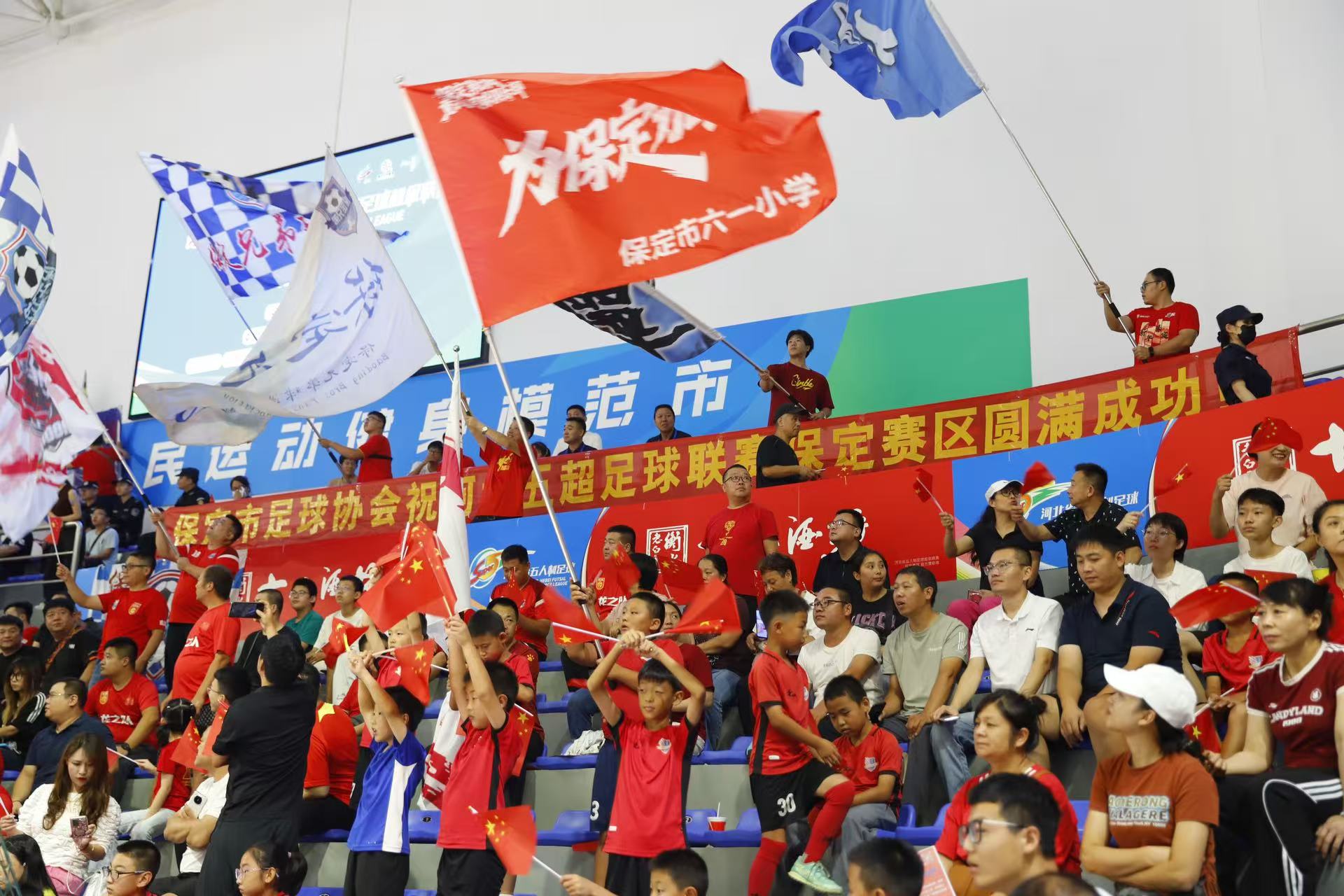 小球迷们挥舞旗帜为保定队加油。 王栋 摄
