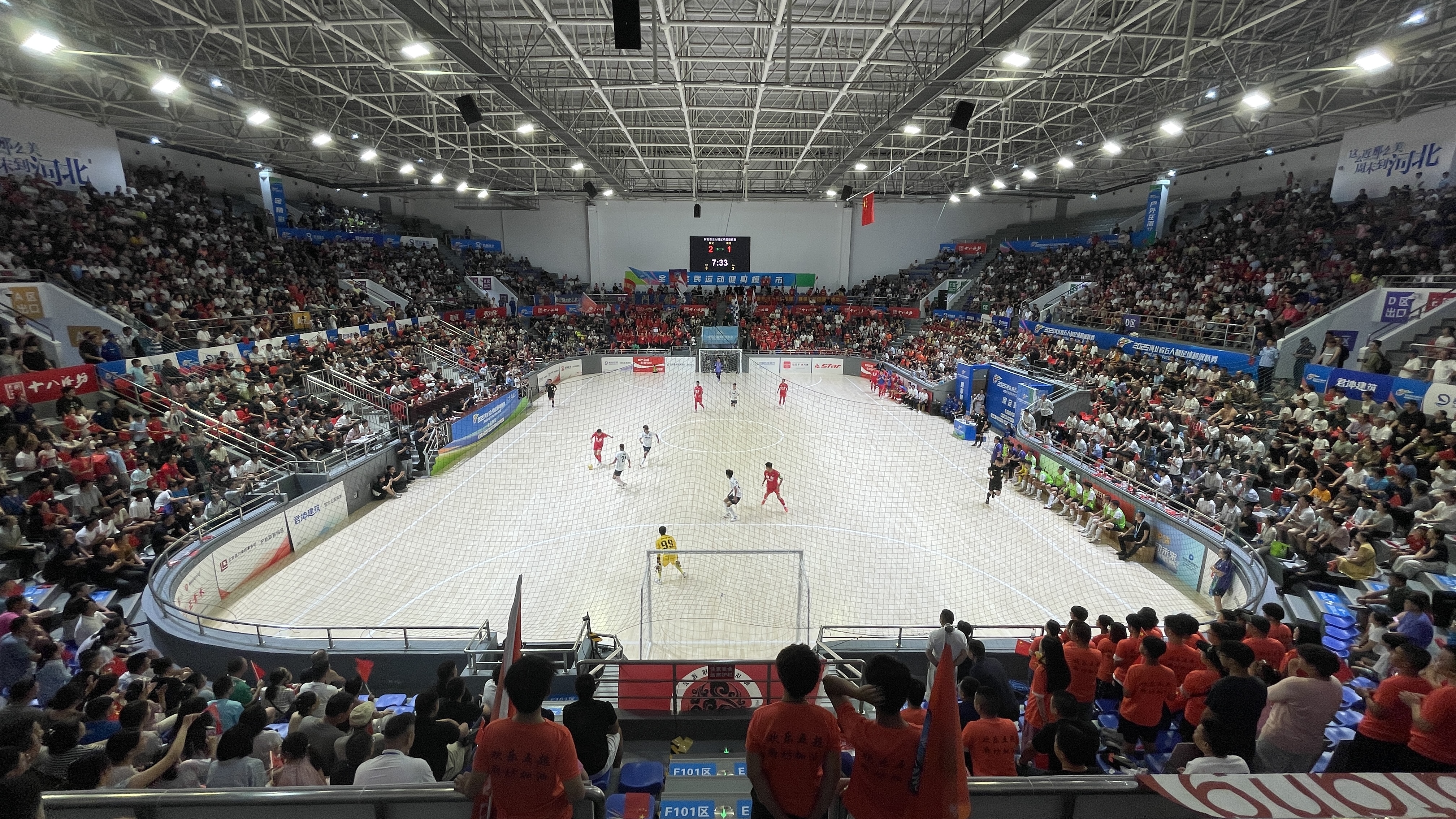 保定晚报讯(记者王艳娇)8月20日晚,保定市体育馆内灯火通明、人声鼎沸,2025年河北省五人制足球超级联赛保定赛区首场比赛在热烈的掌声与欢呼声中拉开帷幕。不仅可容纳4000人的体育馆内座无虚席,爱情广场、万博广场等核心商圈户外大屏直播的第二现场也人头攒动。首场比赛中,保定与廊坊激烈对决,在先失一球的情况下,保定队凭借更稳定的发挥,2:1逆转战胜廊坊队,取得首场开门红。