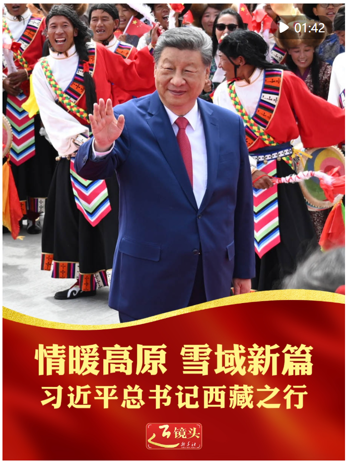 习近平作为中共中央总书记、国家主席、中央军委主席率中央代表团到西藏出席西藏自治区成立庆祝活动,在党和国家历史上是第一次。