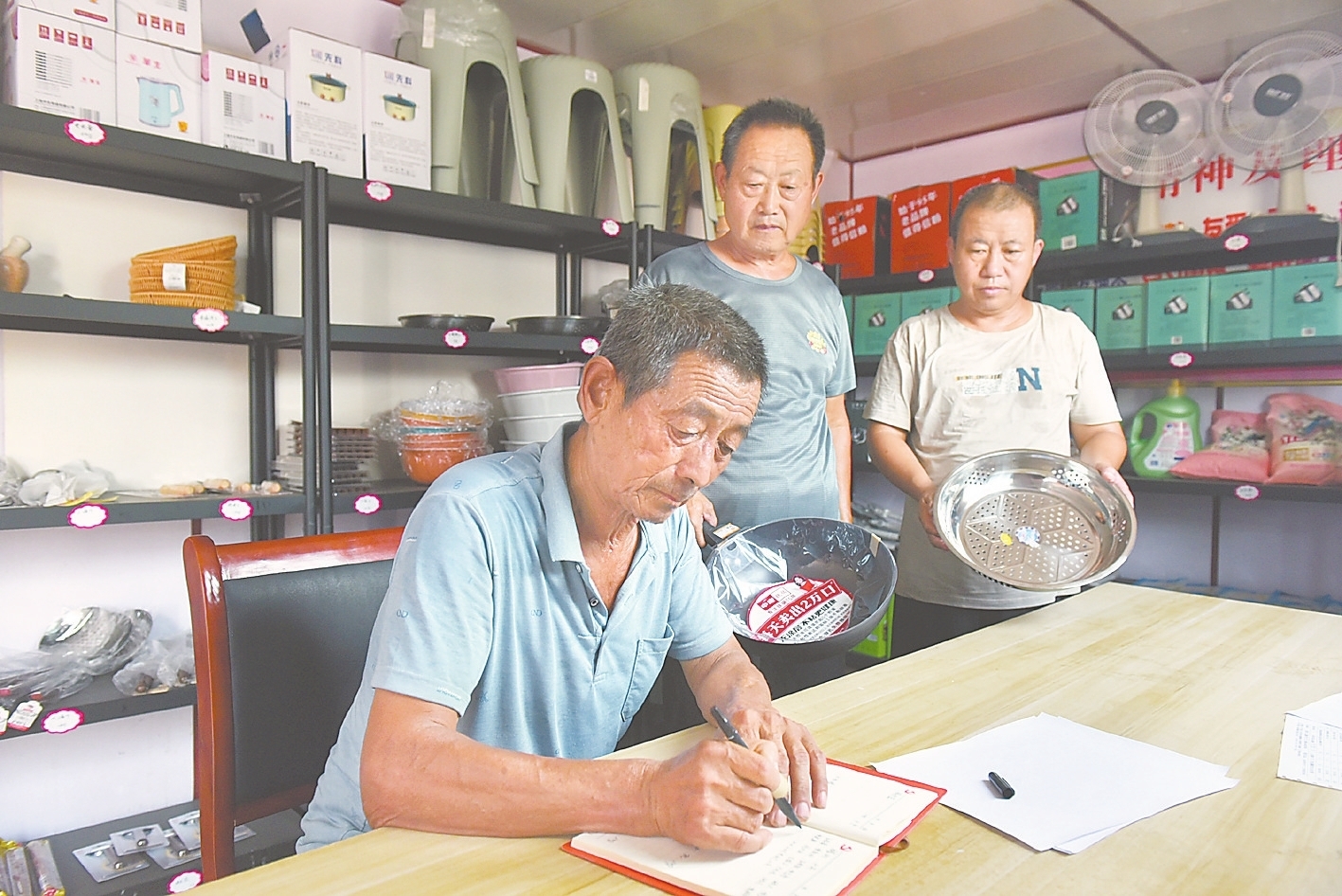 窨子村村民在积分超市兑换日常用品。刘娟摄
