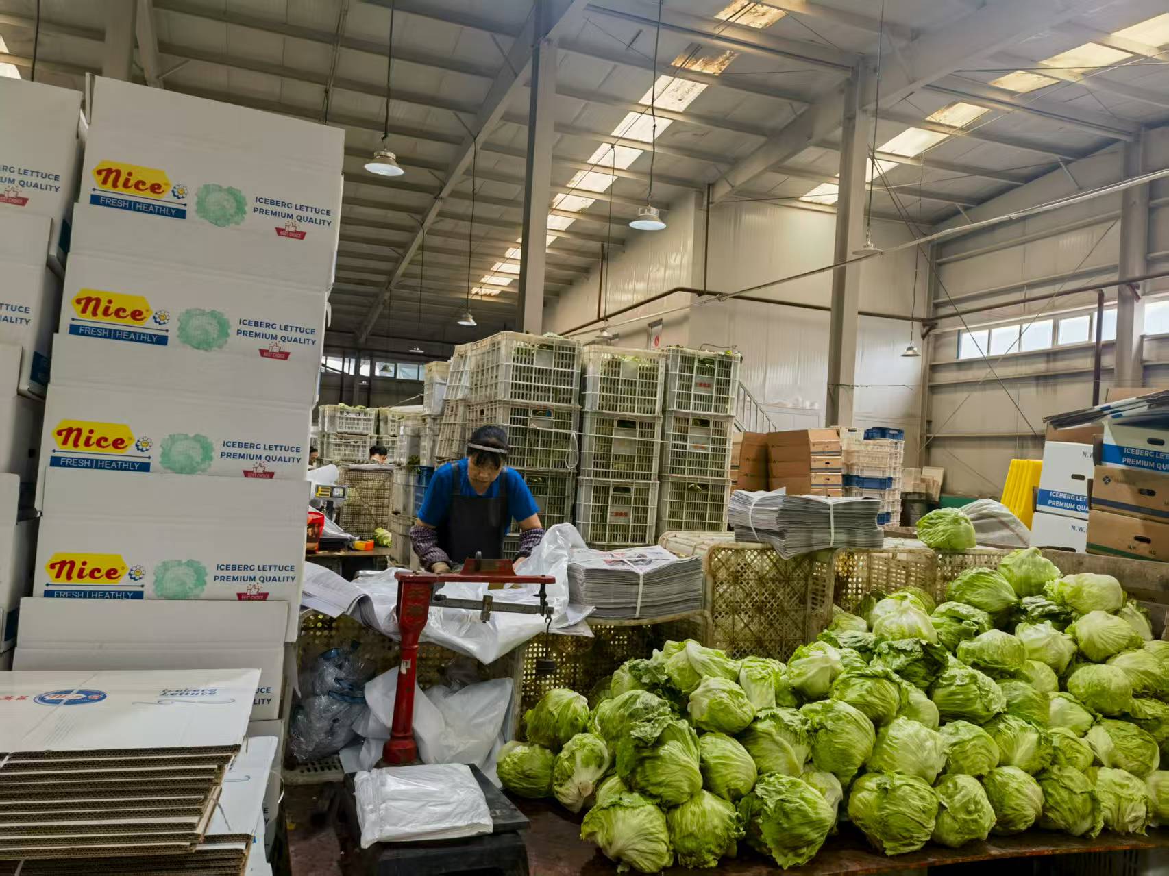 周永春还说,蔬菜采收后进入工厂分拣、包装。正常情况下,生菜在冷藏库3℃环境下,可储存一星期左右,通过真空遇冷机快速降温处理后,可储存20天左右,延长了货架期。今年,当地出口韩国生菜达1000吨以上,每吨生菜创汇800美金。生产的甘蓝通过天津港、青岛港运到泰国曼谷、越南胡志明市,销往越南的蔬菜也可通过陆路运输,从张北运送到广西凭祥市,通过友谊关出口到越南,陆路运输要经过两天两夜。