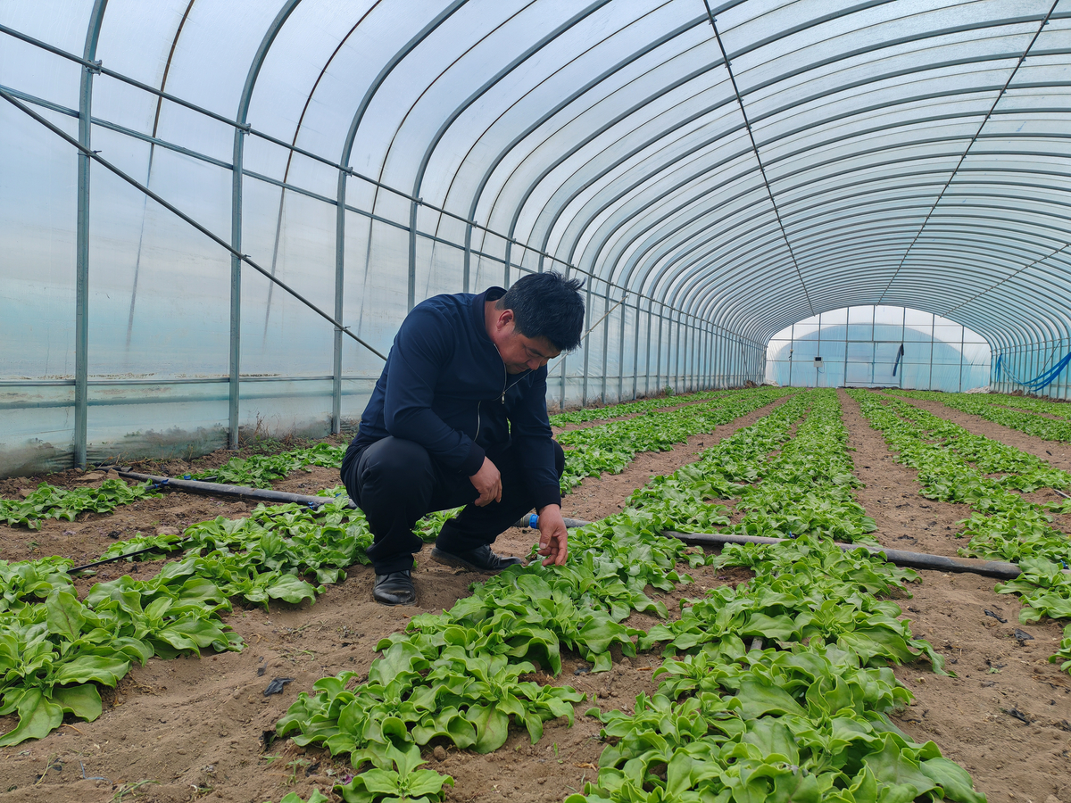三义美村党支部书记阎彪告诉记者,在叶菜、果菜生产区主要种植冰草、茼蒿、芹菜等蔬菜。冰草生长期为1个月,每年大棚可生产4茬,今年200余个大棚种植冰草,一个大棚一年可生产4000公斤。700多个大棚种植茼蒿,每亩地年产茼蒿0.75万公斤。150个大棚种植芹菜,其中香芹生产2茬,每亩地年产0.85万公斤;大杆芹为1.2万公斤。园区蔬菜采用自产自销,销往山东、北京等地,从2022年起,当地与外地客商合作,建设园区、生产和销售蔬菜,外地客商在国内各大蔬菜交易市场均设有档口,冰草主要销售到山东;芹菜销售到北京,从5月中旬上市,一直销售到10月底。园区建有7个冷库,蔬菜经分拣、预冷、暂存后,通过冷链运输车一天一夜即可将蔬菜运送到国内各地。