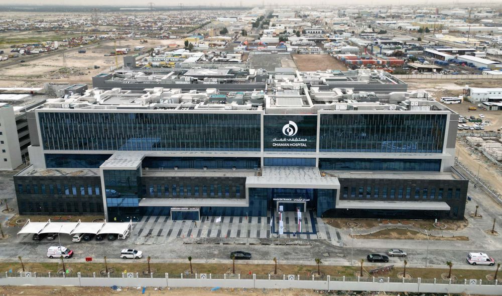 由中国冶金科工股份有限公司承建的科威特医保医院项目,是科威特“2035国家愿景”下建设的首批医院,旨在提高当地基本医疗保障条件。这是该项目杰赫拉省分院外景(2023年2月15日摄,无人机照片)。