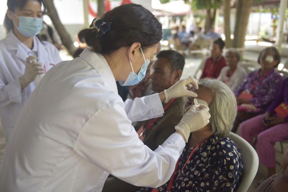 2022年12月,由中国广西医疗团队和中国香港非政府组织共享基金会合作开展的消除白内障致盲项目,在柬埔寨波萝勉省启动。该项目计划用五年时间,在包括柬埔寨在内的五个国家为3.75万名患者进行免费白内障手术。这是2024年1月28日,中国医生在波萝勉省医院为接受手术的白内障患者摘掉纱布。