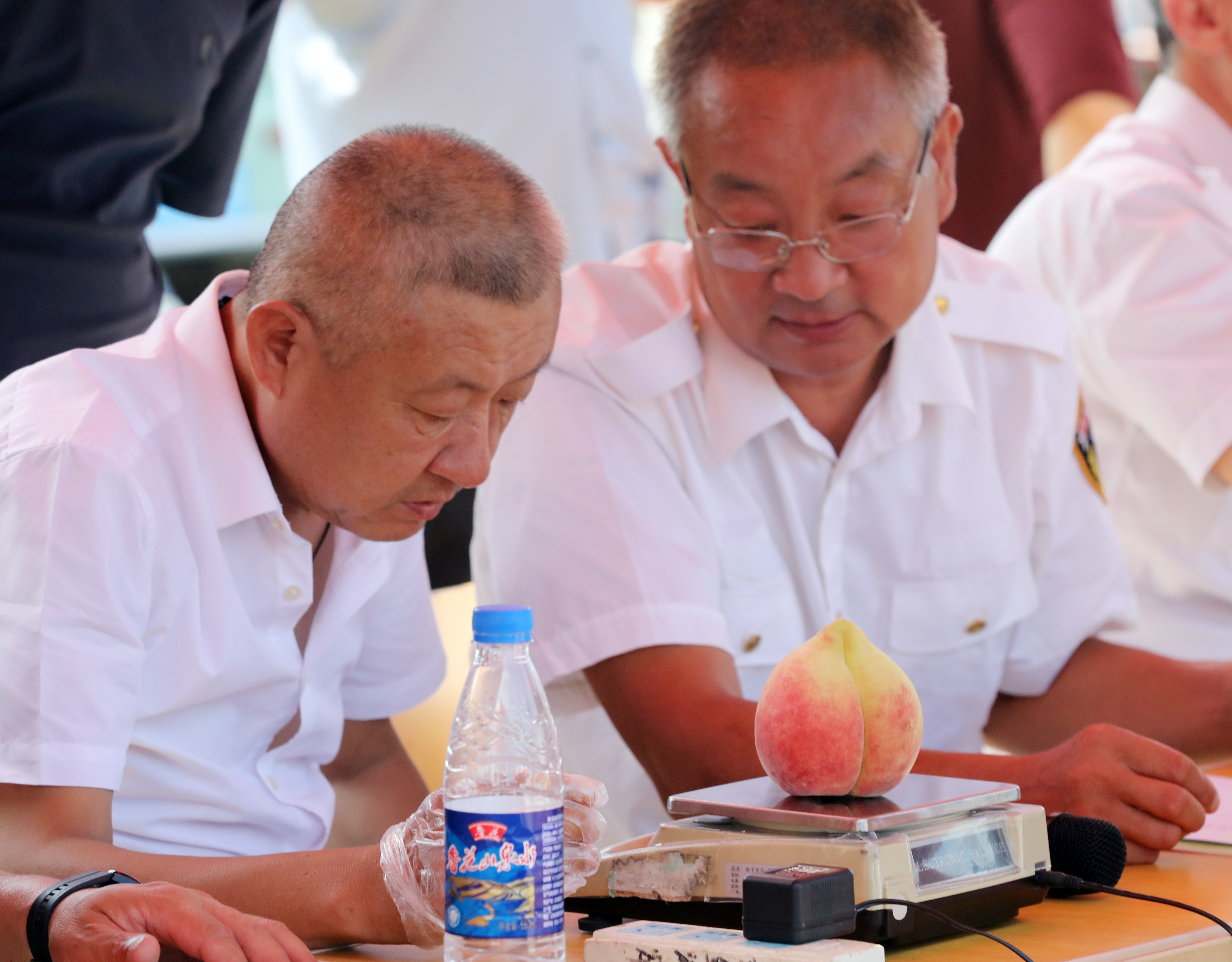 本届“桃王争霸赛”是深州市打造“人面桃花 爱在深州”城市品牌开展的蜜桃季系列活动之一。比赛现场,由深州市农业农村局、市场监管局等相关部门组成评审团,按照果型色泽、口感风味、含糖量等指标对参赛蜜桃进行综合评定。所有蜜桃重量均在350克以上,并全部以编号匿名参评,确保公平公正。