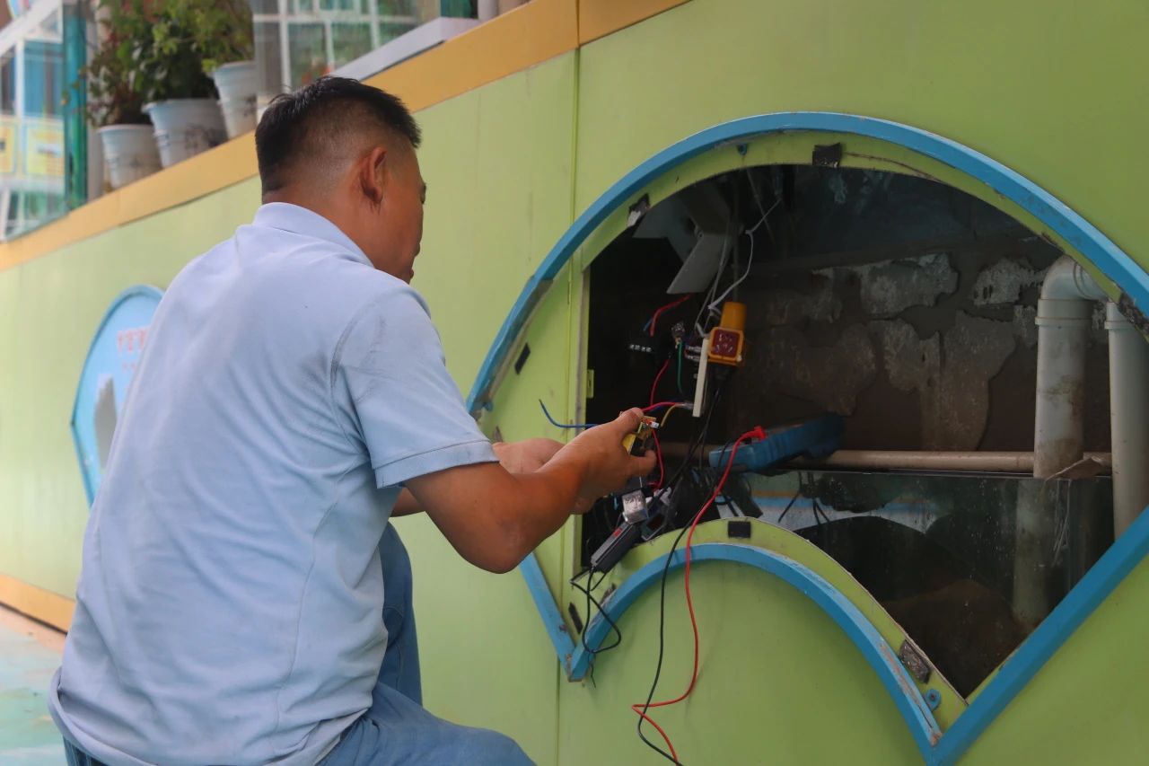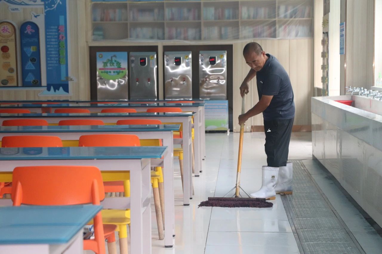 地砖铺设、绿植景观养护、运动场地维护、设备设施检修、宣传栏更新……烈日炎炎下,总有一群身影在忙碌,汗水滴落,生长出的,是学子们成长的诗意空间。