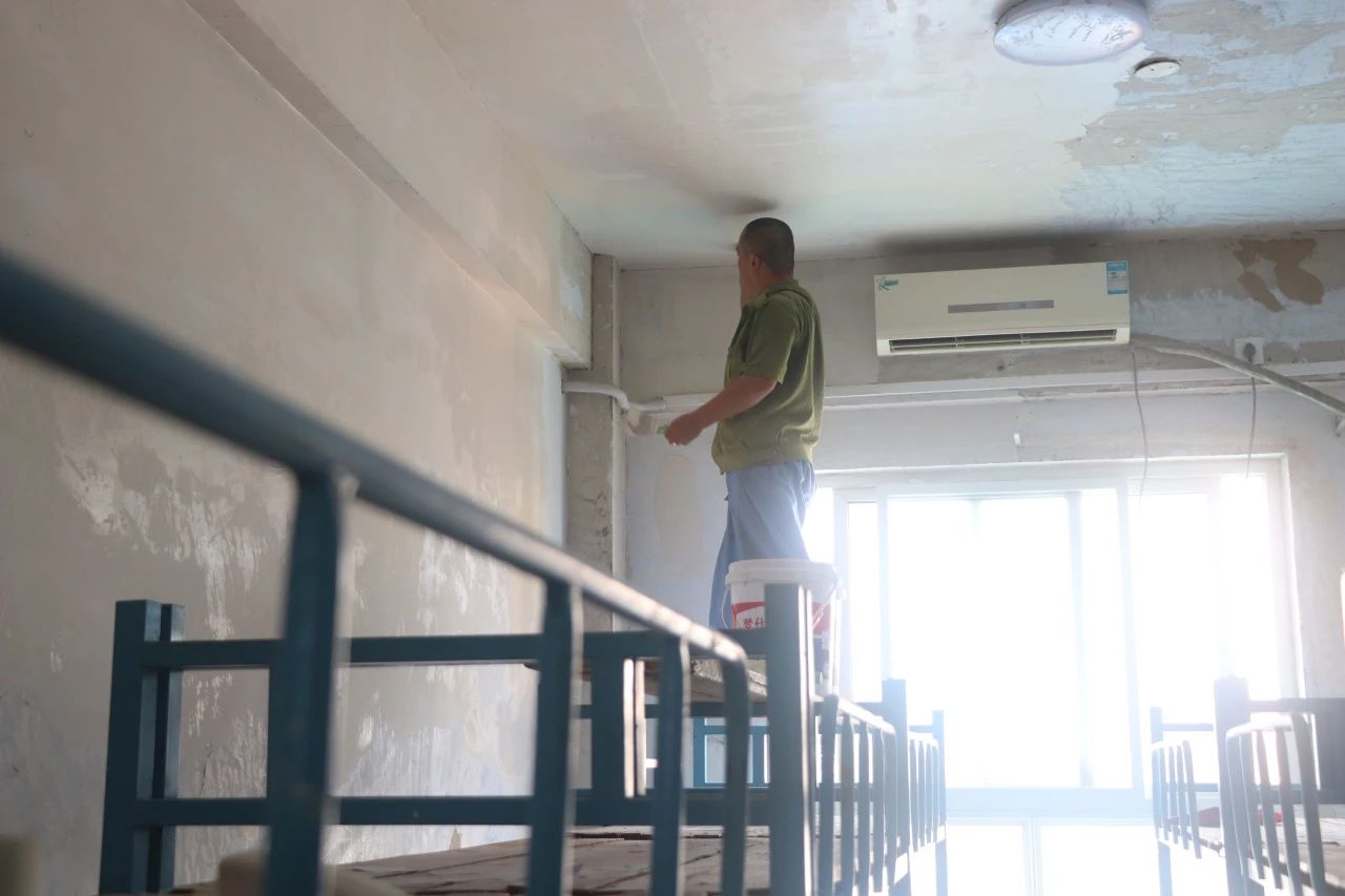 宿舍,是同学们的“第二个家”,这个暑假,有许多工人在为同学们的居住体验升级默默挥洒汗水。
