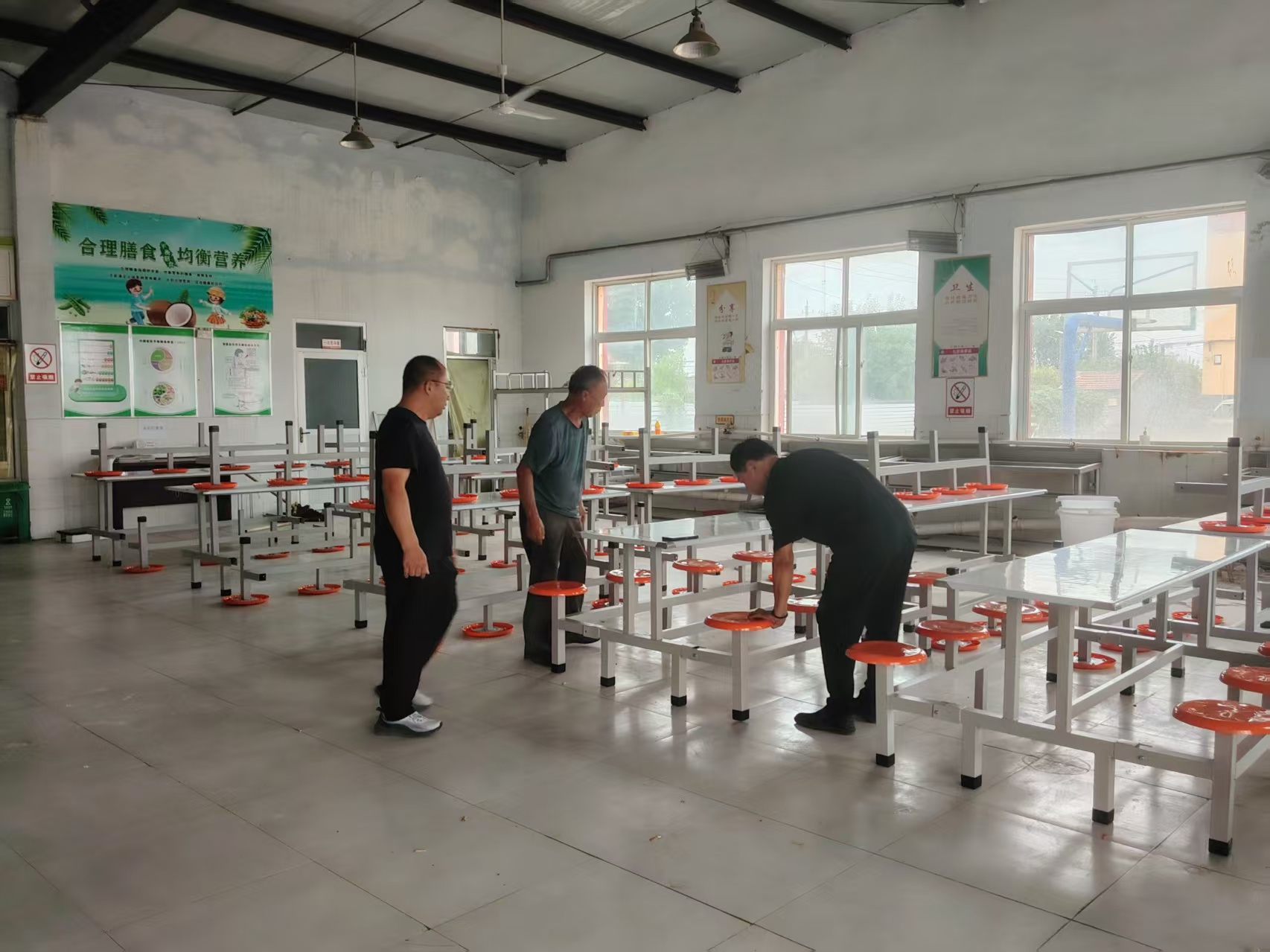 景县青兰镇中学的变化也不少:餐厅旧餐桌全部换新,宿舍斑驳墙面尽数翻新,篮球场重新粉刷后鲜亮整洁,校园公共区域彻底清扫后,处处都透着清爽利落。