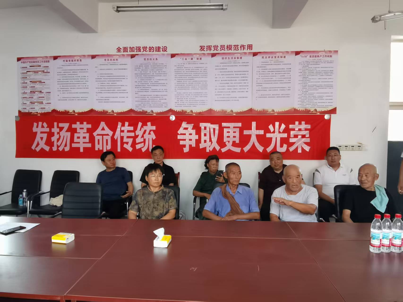 8月7日,深州市兵曹乡马官屯村村委会会议室,一场纪念中国人民抗日战争暨世界反法西斯战争胜利80周年座谈会正在举行。老党员、烈士后代、村干部和村民代表围坐一堂,共同追忆80年前那场伟大的胜利,缅怀先烈,感悟初心。