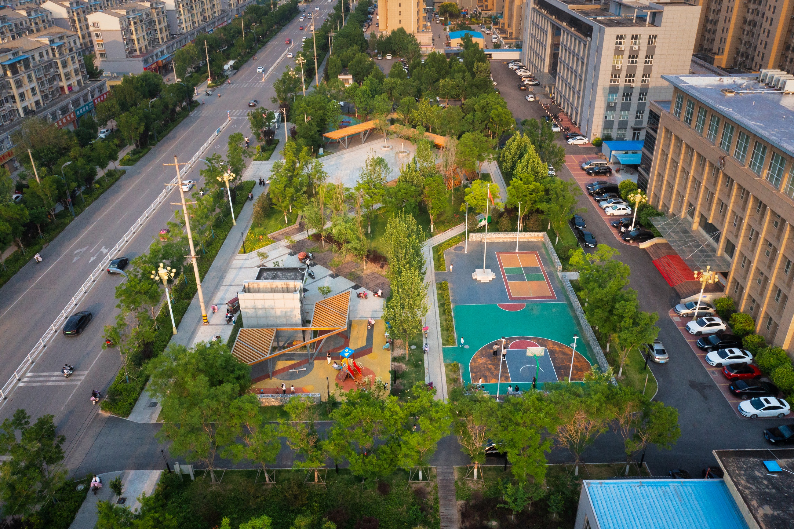 2023年,故城县决心破局,以“拆墙透绿”为切入点,深入践行“人民城市人民建,人民城市为人民”的理念,推动城市空间开放共享。这场行动涉及故城县信访局、教育局等9个县直及省直部门。围墙拆除后,新增绿地面积5.6万平方米,通过建设高品质口袋公园,实现了绿地、停车、公厕等资源的共享,让市民出门300米能见绿、500米能进园,15分钟生活圈的美好愿景成为现实。